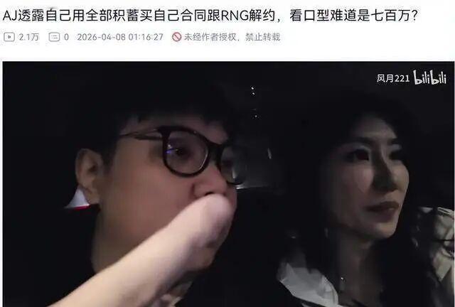 之前直播透露过自己和RNG的直播公会的合同还没结束,而且因为RNG欠款的问题,此前AJ还说过自己因为后台有大概一百万的收入甚至都因为RNG欠债被扣走还债,为此当时心态彻底崩了。他当时还想过拿小号直播,但是怕像Mlxg那样违约导致背上天价债务,最终还是不了了之。