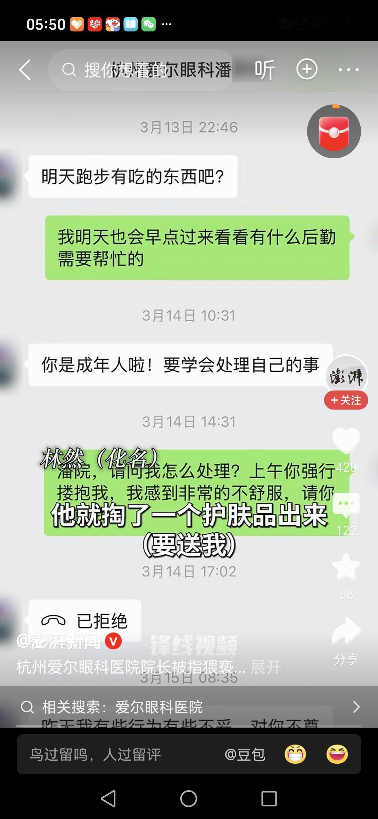 近日,杭州萧山发生的一起事件,如同一颗重磅炸弹,瞬间引爆了舆论场。主角是当地爱尔眼科的院长潘某某,而受害者则是医药公司的销售经理林然。这本该是一起清晰的职场性骚扰甚至猥亵案件,却在后续的发酵中,演变成了一场关于权力、人性与法律边界的激烈博弈。