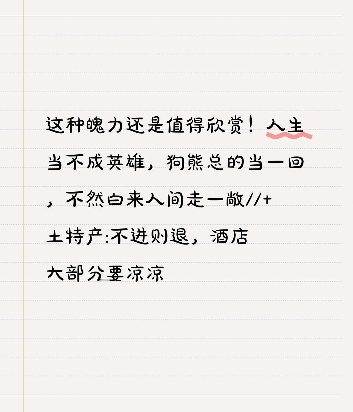 在如今酒店行业“不进则退”的形势下,也需要有这种魄力去突破、去创新,不然就只能“凉凉”。人生短暂,要么做英雄,要么做一回有勇气的“狗熊”,别白来这人间一趟。