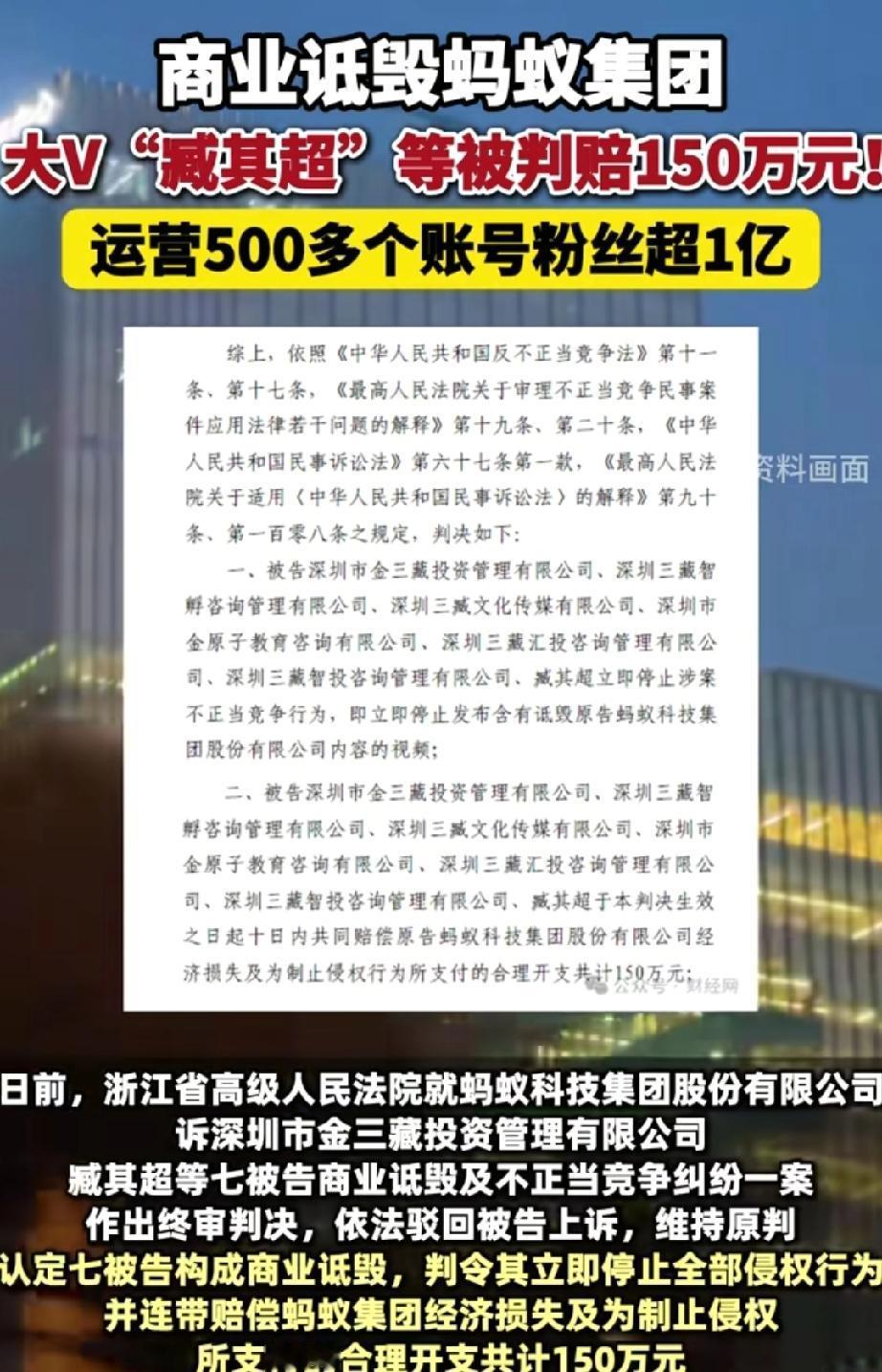 这些账号长期散布不实信息,还针对蚂蚁集团等企业发布相关视频来引流,把内容和自己的授课、图书销售绑定,搞“引流—变现”。好在法律公正,浙江省高级人民法院判他和关联机构构成商业诋毁,赔150万,多个账号还被永久封禁。这就是欺骗大众、不正当竞争的下场,网络不是法外之地,得为自己的行为负责! 臧晓超 臧其书