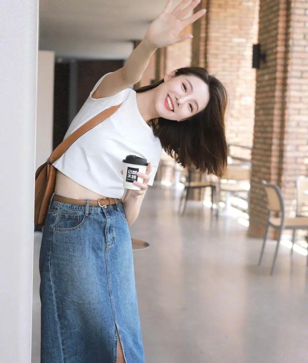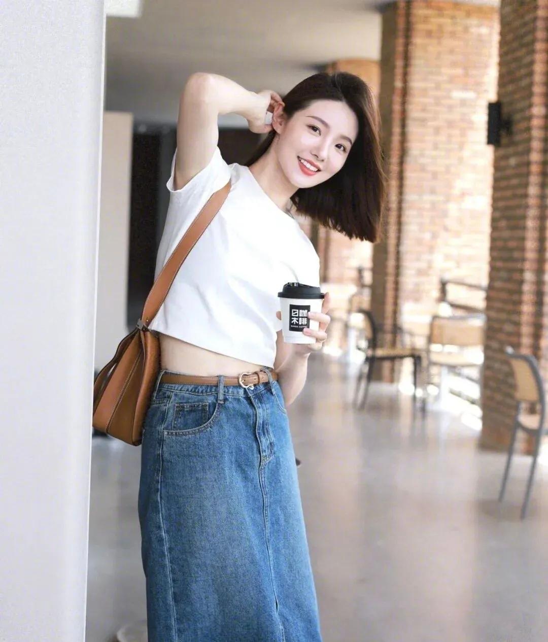 经典牛仔裙穿搭风格》🌞 白色T恤+牛仔裤裙,轻松出行,咖啡相伴,元气满满!💃🏻👜🍵