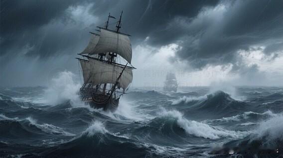 船行至五里滩这个危险地段,大风刚刚有停息的迹象,船夫们既要张帆借风,又要举棹划水,双重用力。