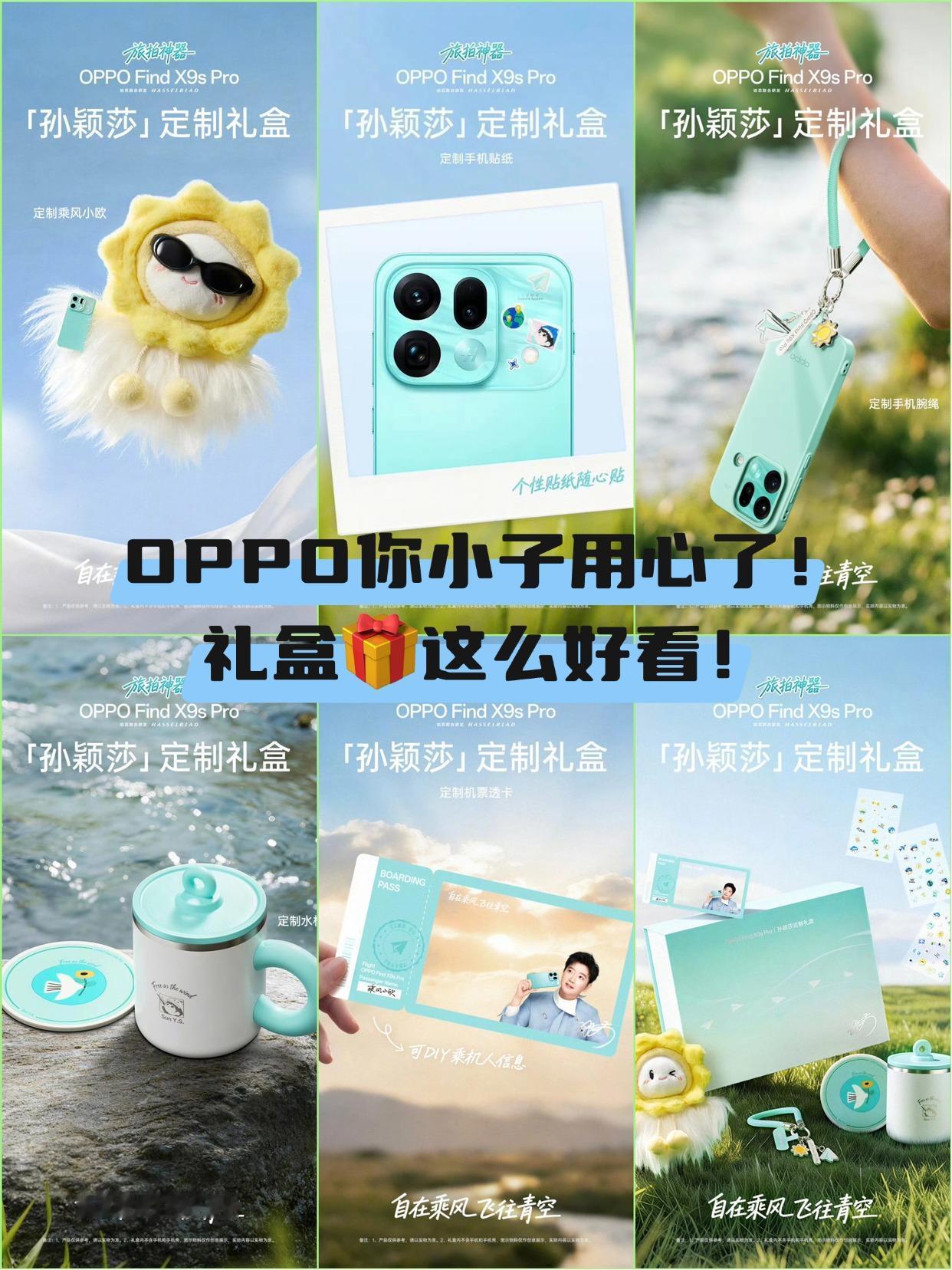 该说不说,这次物料的莎莎非常好看,非常轻松自在,仿佛自由翱翔在天空。Find X9s Pro四个颜色和莎莎定制礼盒都很好看,有玩偶、马克杯、贴纸、挂绳等等,OPPO很用心。