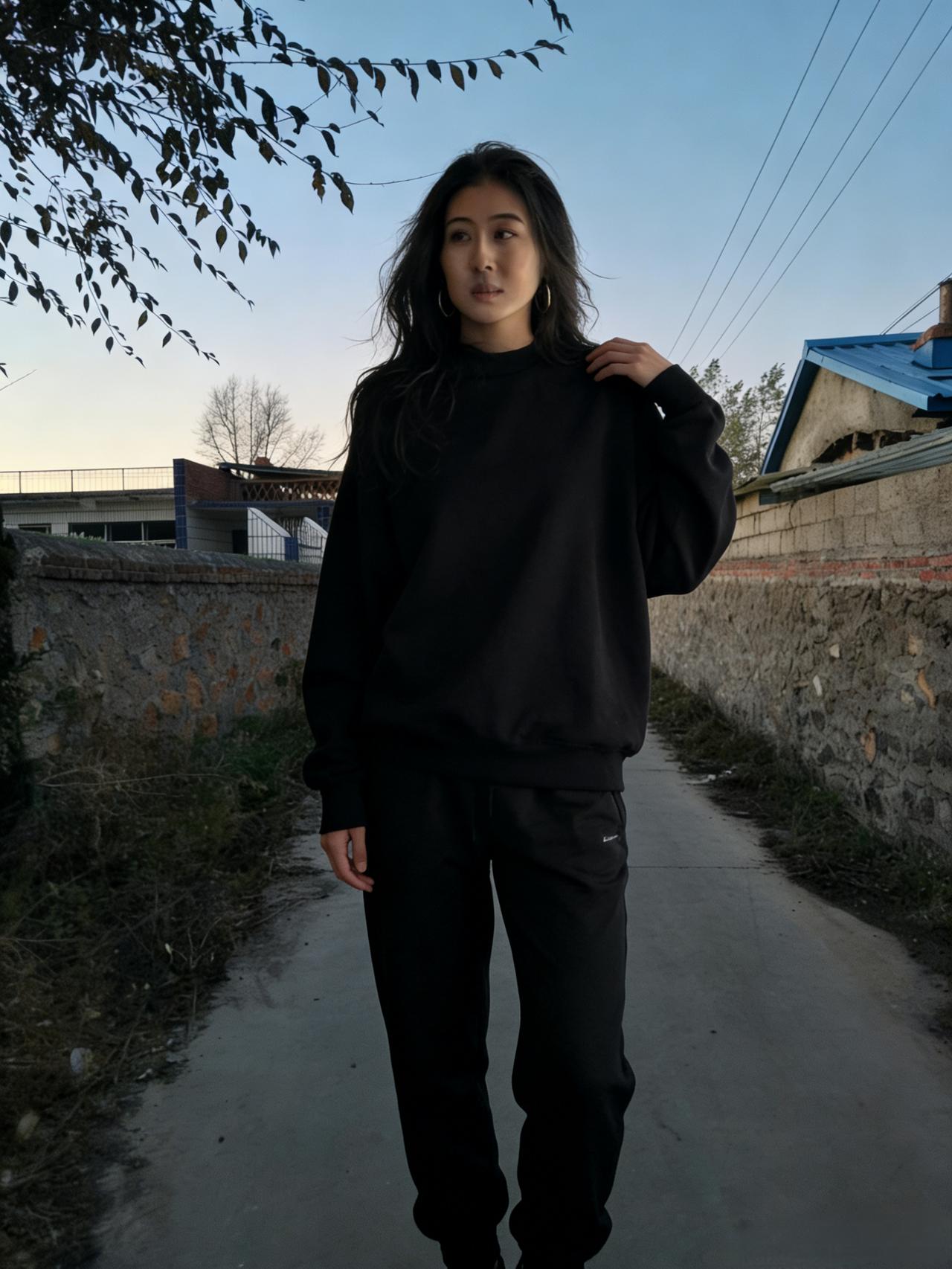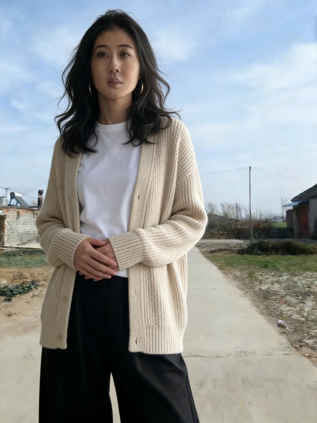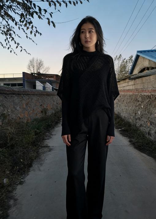 倩影亭亭立村头,晚风拂鬓意悠悠。