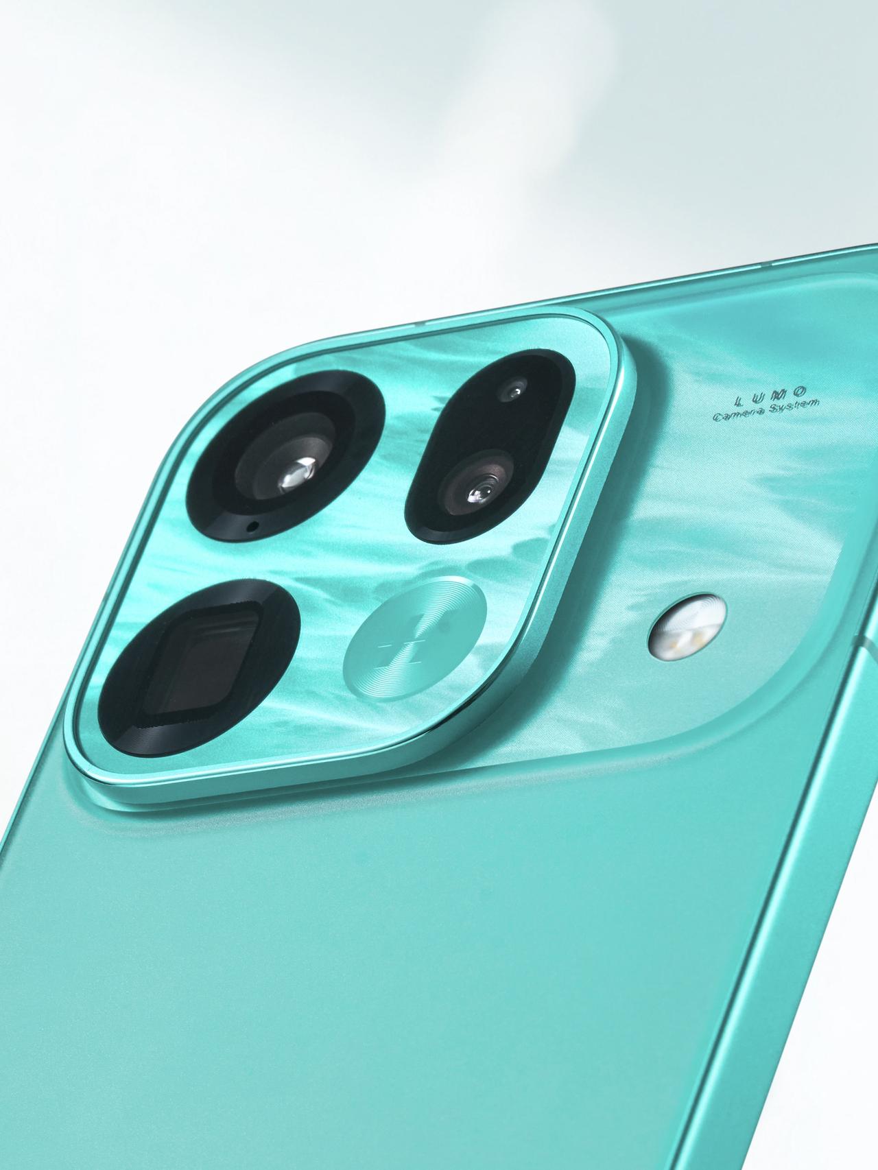 青色这个色相在手机背板上真的不好拿捏,偏绿就廉价,偏蓝就平庸,饱和度稍高一点就俗气,大多数品牌做青色都翻车在这里。