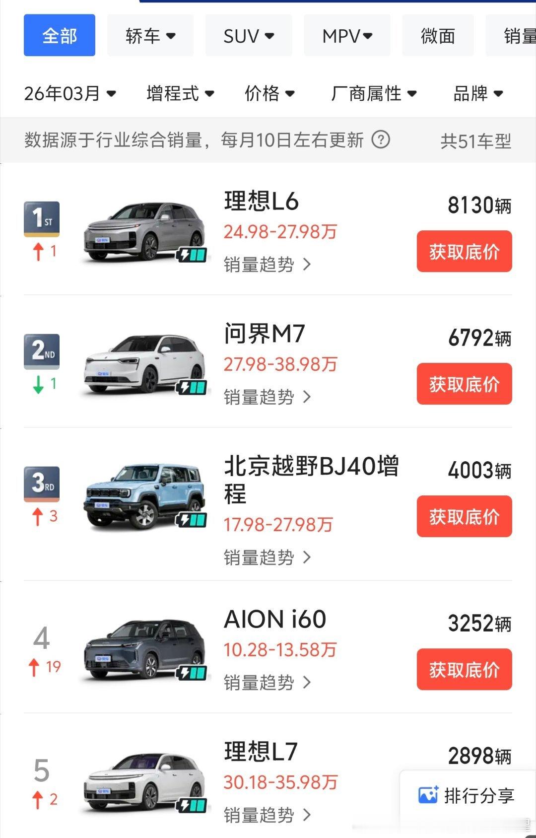 3月钛7宣布拿下中国全品类混动销冠(含增程)一看还是真的 极氪9x以超高均价拿下第三,也非常亮眼。增程式 第一是理想。今年确实是纯电大年,北京车展过后,整个市场还有大变化。