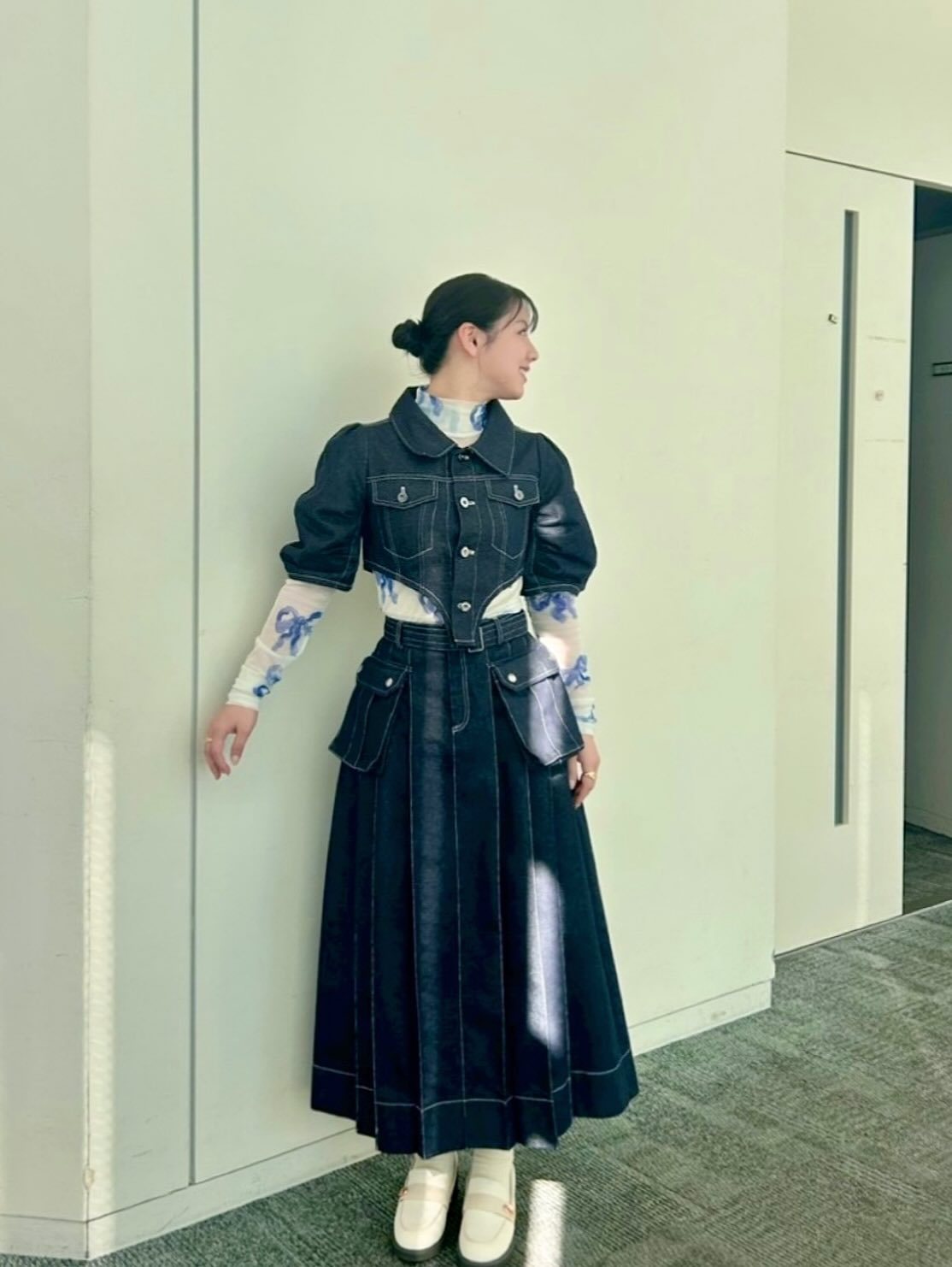 渡邉美穂「最近のお衣装🌸載せられてなかったので〜もうすっかり4月も中旬に差し掛かかるね。」