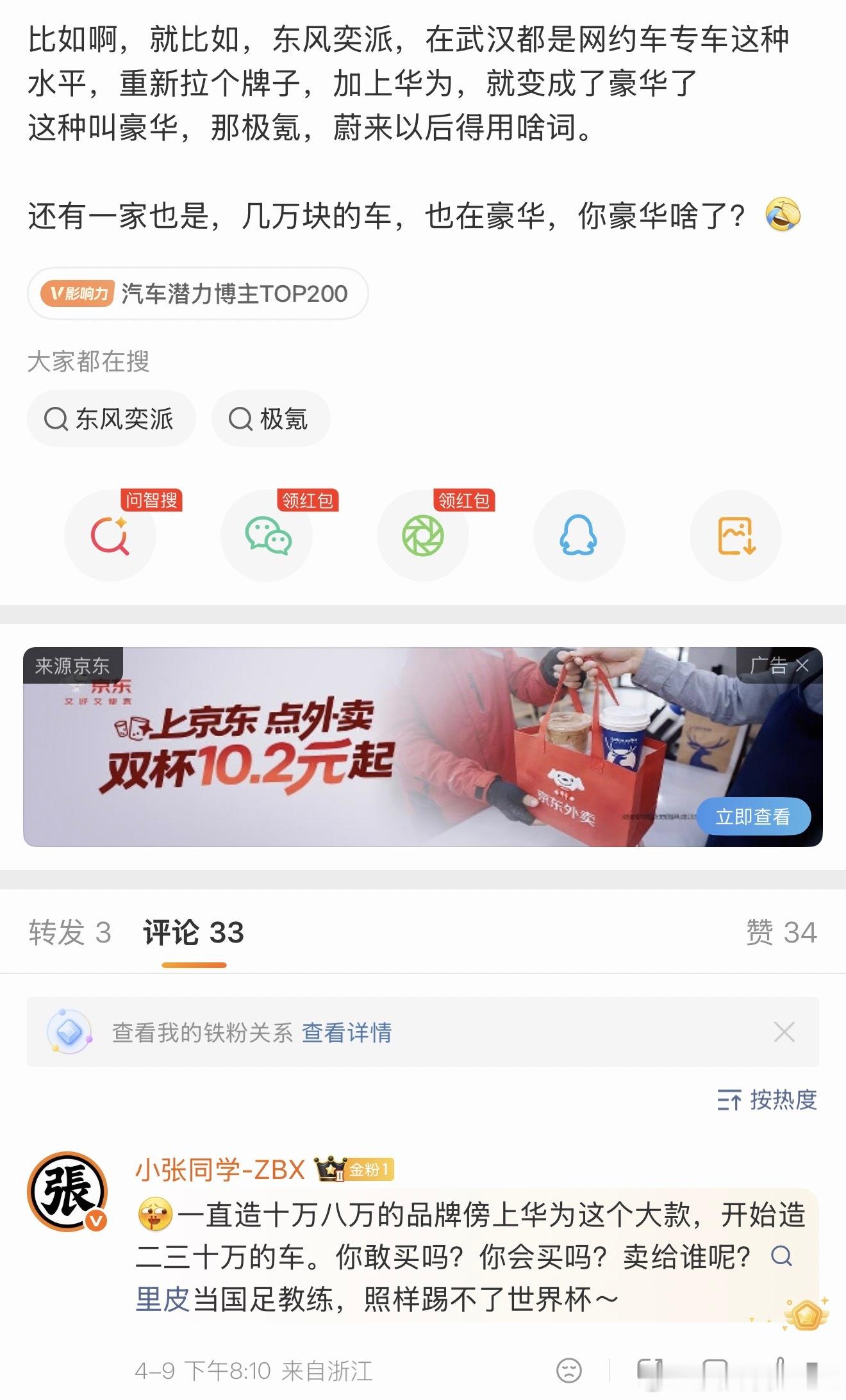 也有人暗戳戳拿小米挡箭。说没造过车的上来就干二三十万的车,问我买不买。