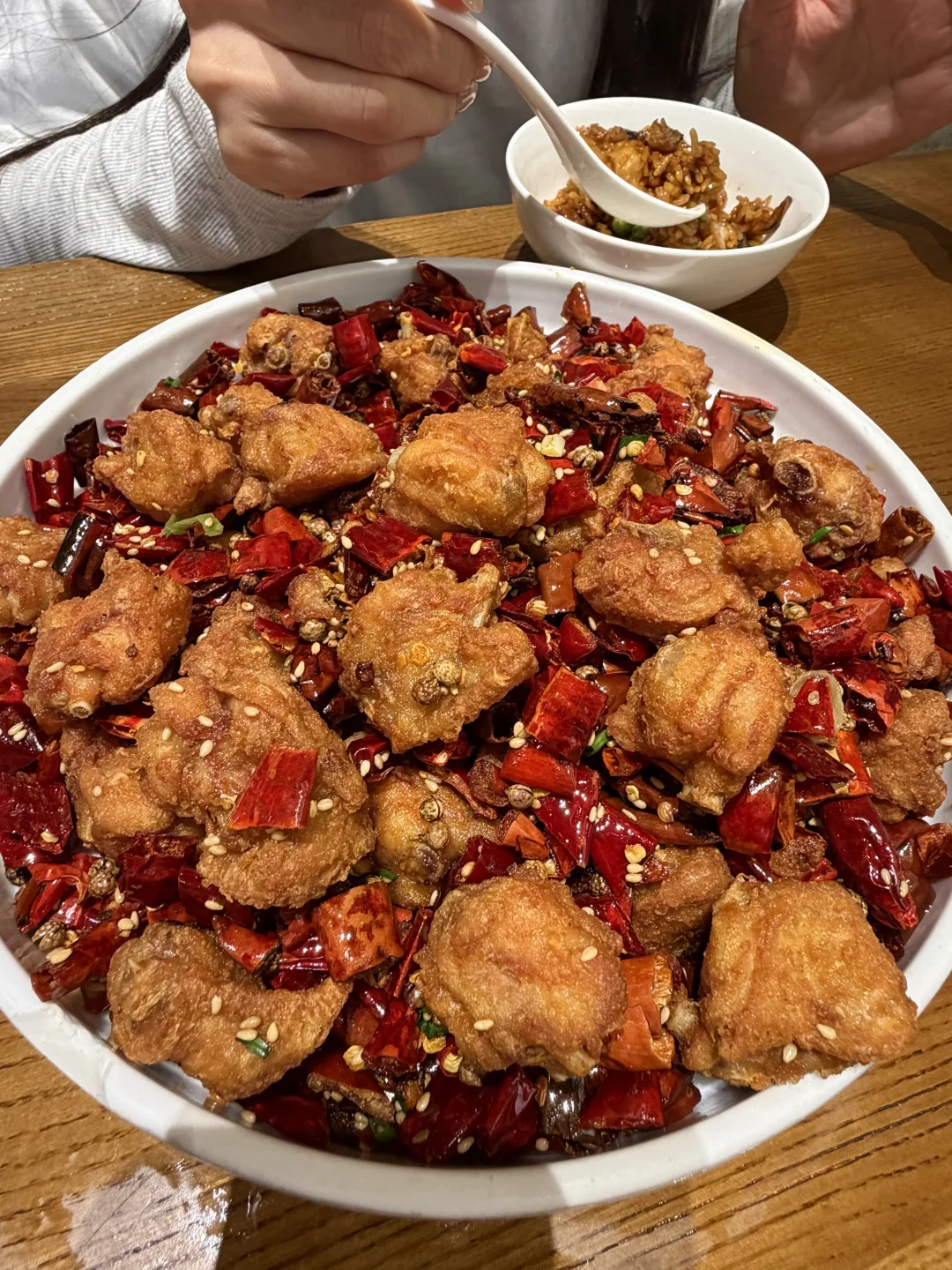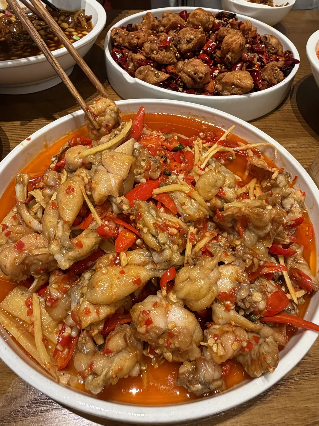 辣子鸡,牛杂,番茄和牛滑蛋,虾球都好好吃