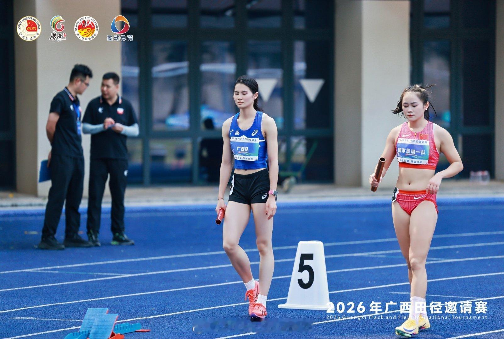 2026年广西田径邀请赛(第二站)女子4x100米接力,梁小静、葛曼棋、朱俊颖、陈妤颉组成的一队夺冠。两支队伍各有优劣,二队最后交接出现了问题。田径说一哈你不知道的田径故事田径