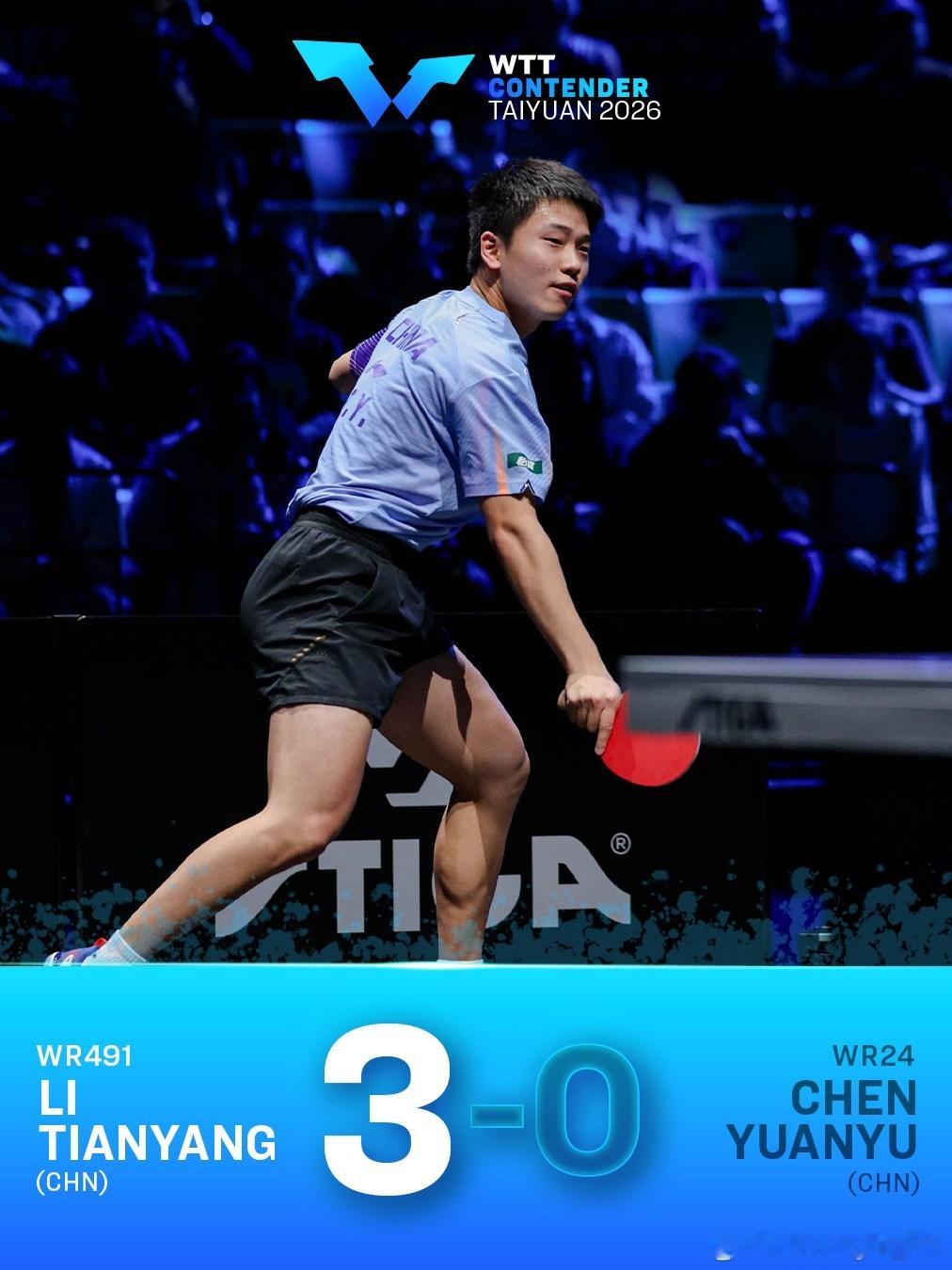 WTT常规挑战赛太原站2026 外卡正在上升🔝李天阳以3-0战胜3号种子陈垣宇🤯