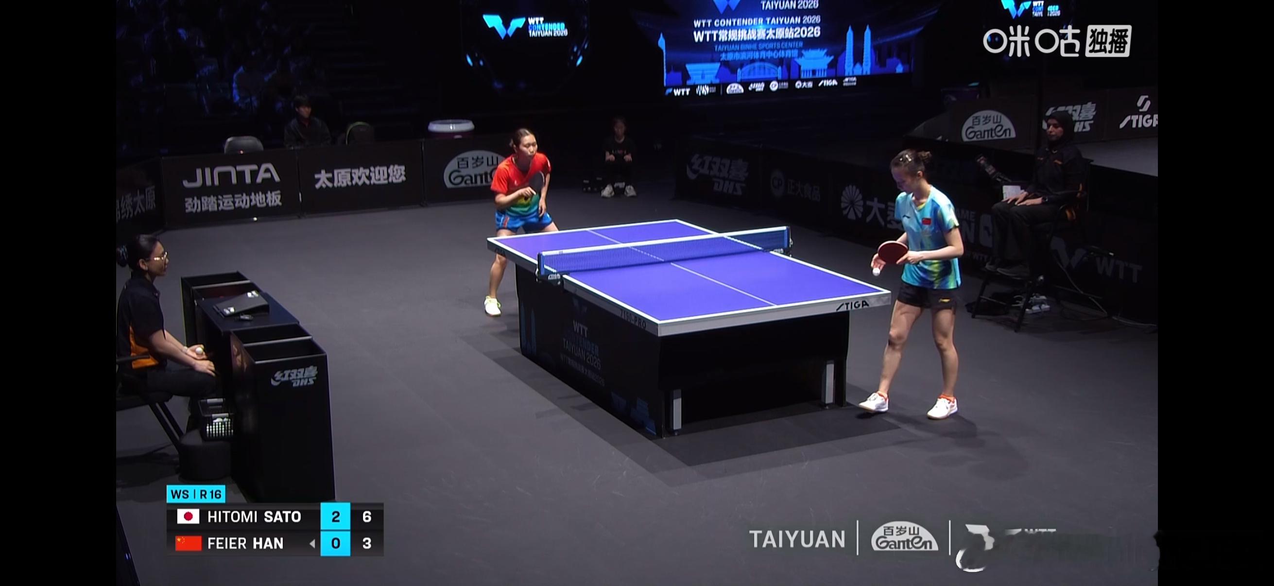 WTT常规挑战赛太原站2026wtt 女单1/8决赛:
