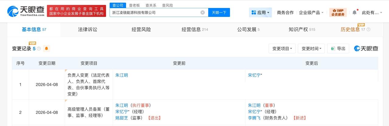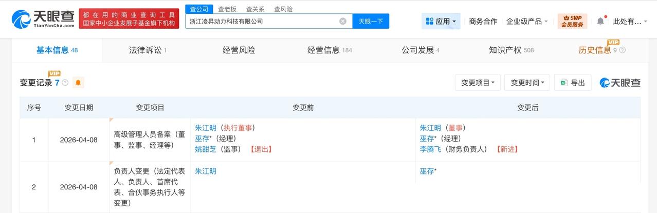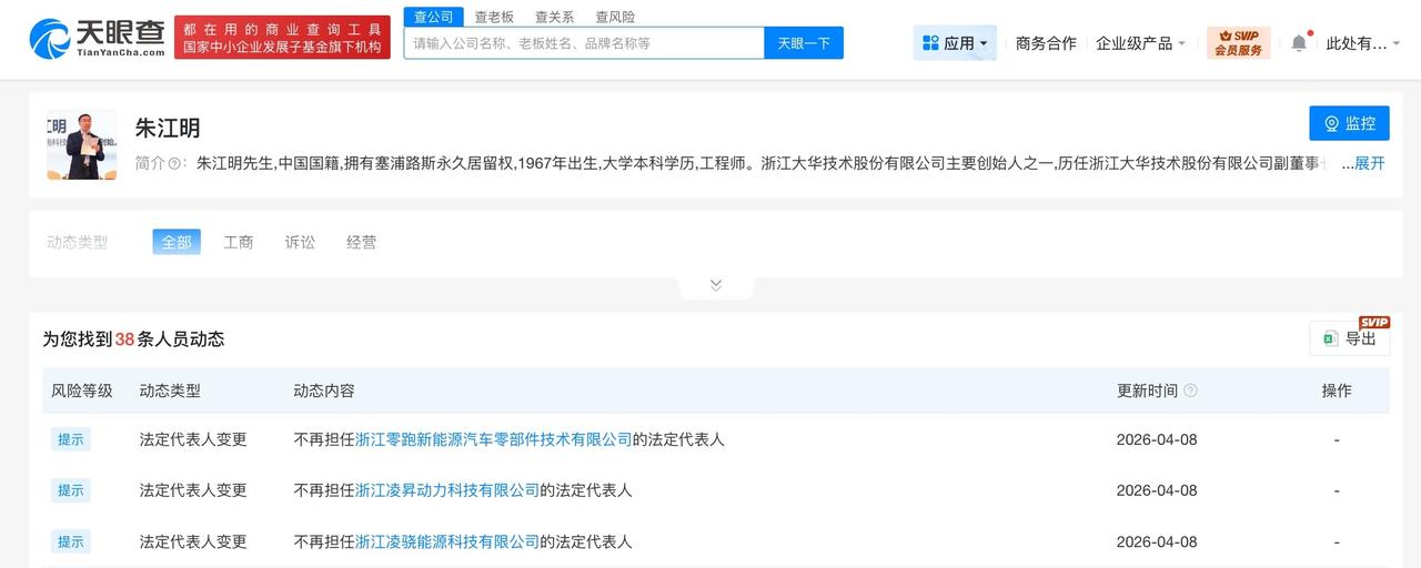 朱江明卸任零跑旗下多家公司法定代表人 创始人在零跑旗下多家公司职位变更 天眼查