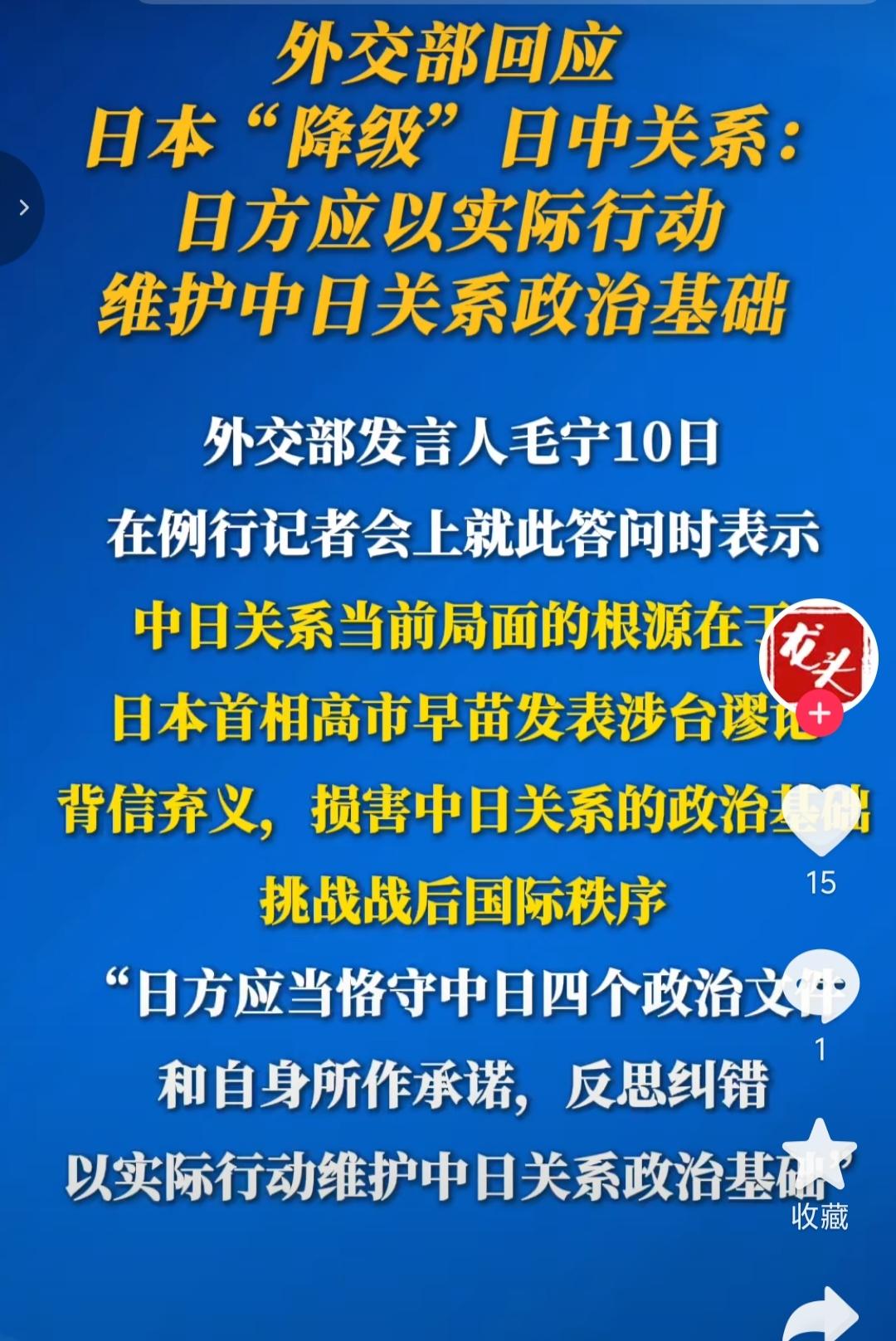 日本降级中日关系,中国一点都不慌,直接点名高市早苗,这一切的根源都是源自于她的涉台谬论。日本这种行为很明显就是“恶人先告状”,显得非常的幼稚和愚蠢。自以为降级中日关系,中国就会主动对日本示好,那就是日本痴心妄想了,那是根本不可能呢。日本要是不懂中国现在是什么样的想法,可以看看前车之鉴立陶宛得罪中国的下场。日本要是继续如此妄为,那立陶宛的下场就是日本的下场,甚至结果会更糟糕。