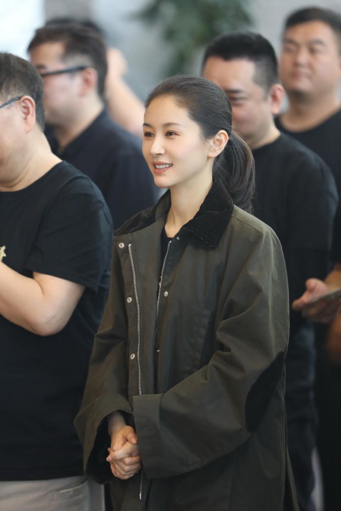王子文外面穿了一件卡其色的大衣,整个人显得很有气势。