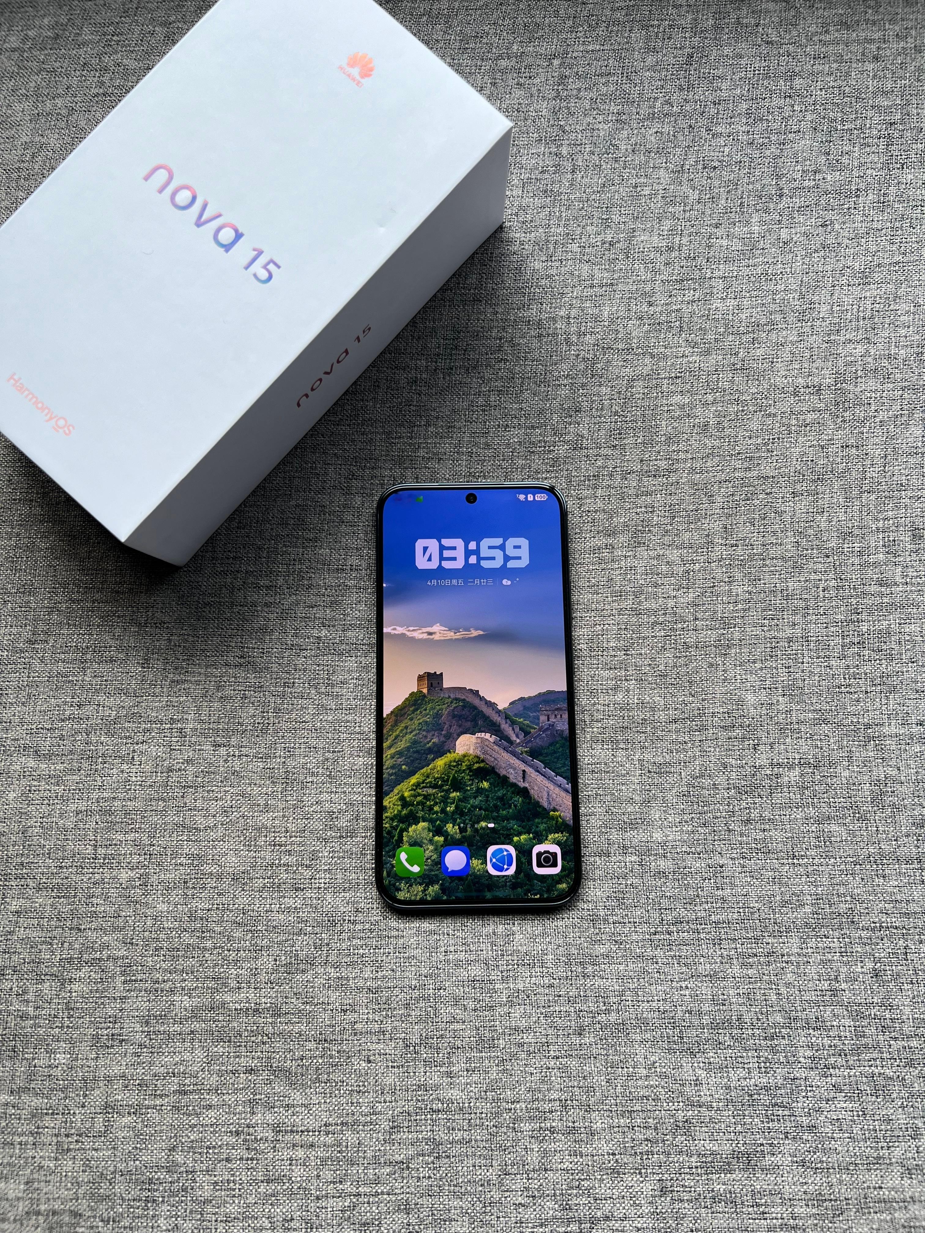 华为Nova15 12+512G 黑色,屏幕完美,中框轻微使用痕迹,盒子配件全套