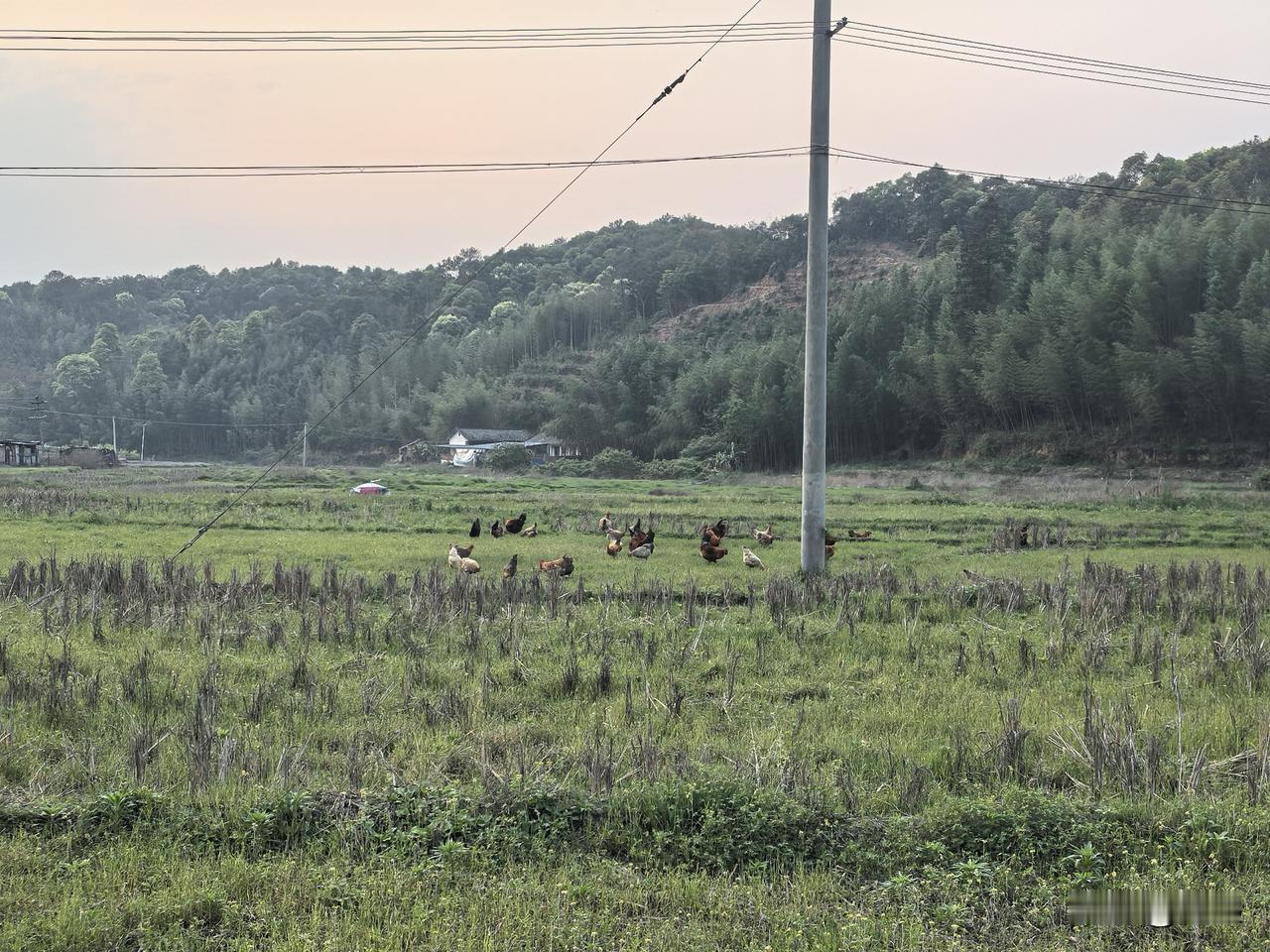 大家多久没有看到这种田野风光了?鸡都是放养在田里的,过段时间,村里的人就会开始插