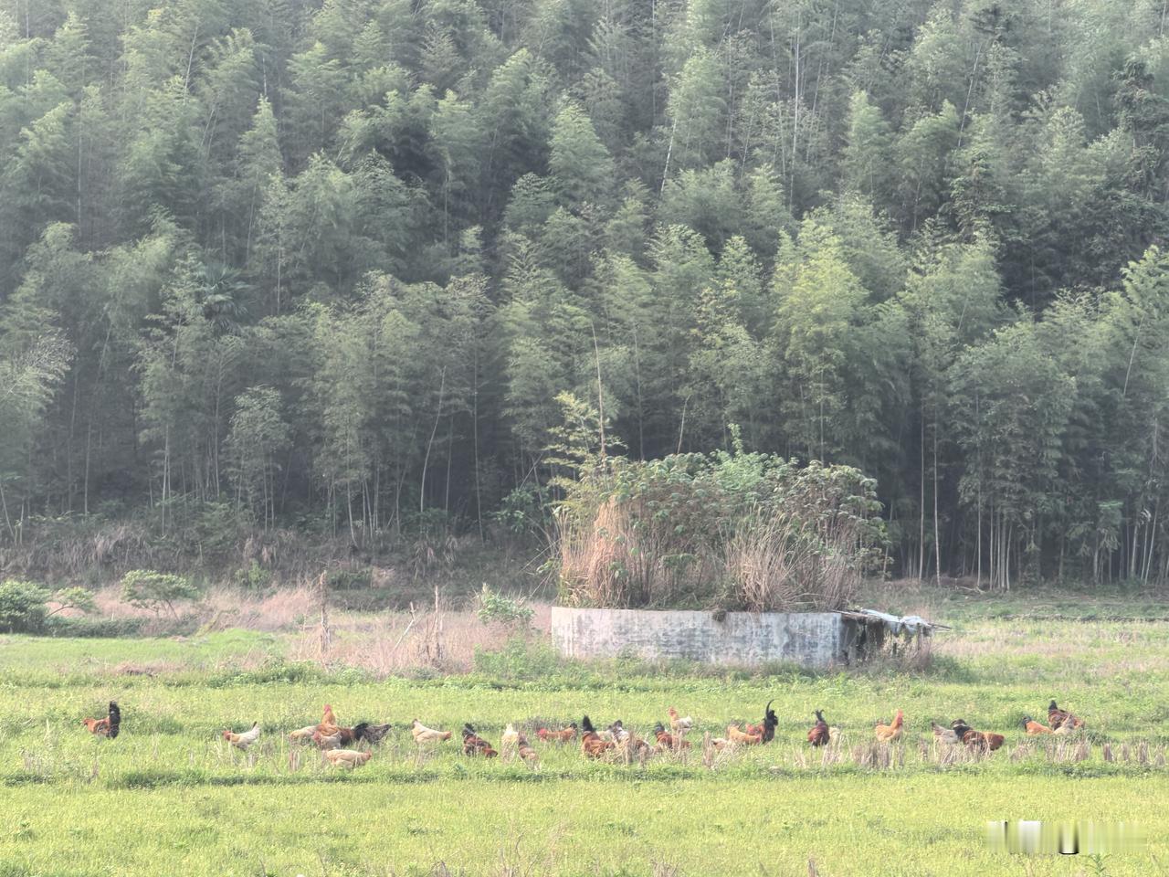 大家多久没有看到这种田野风光了?鸡都是放养在田里的,过段时间,村里的人就会开始插秧播种,鸡才会被关进鸡舍里。