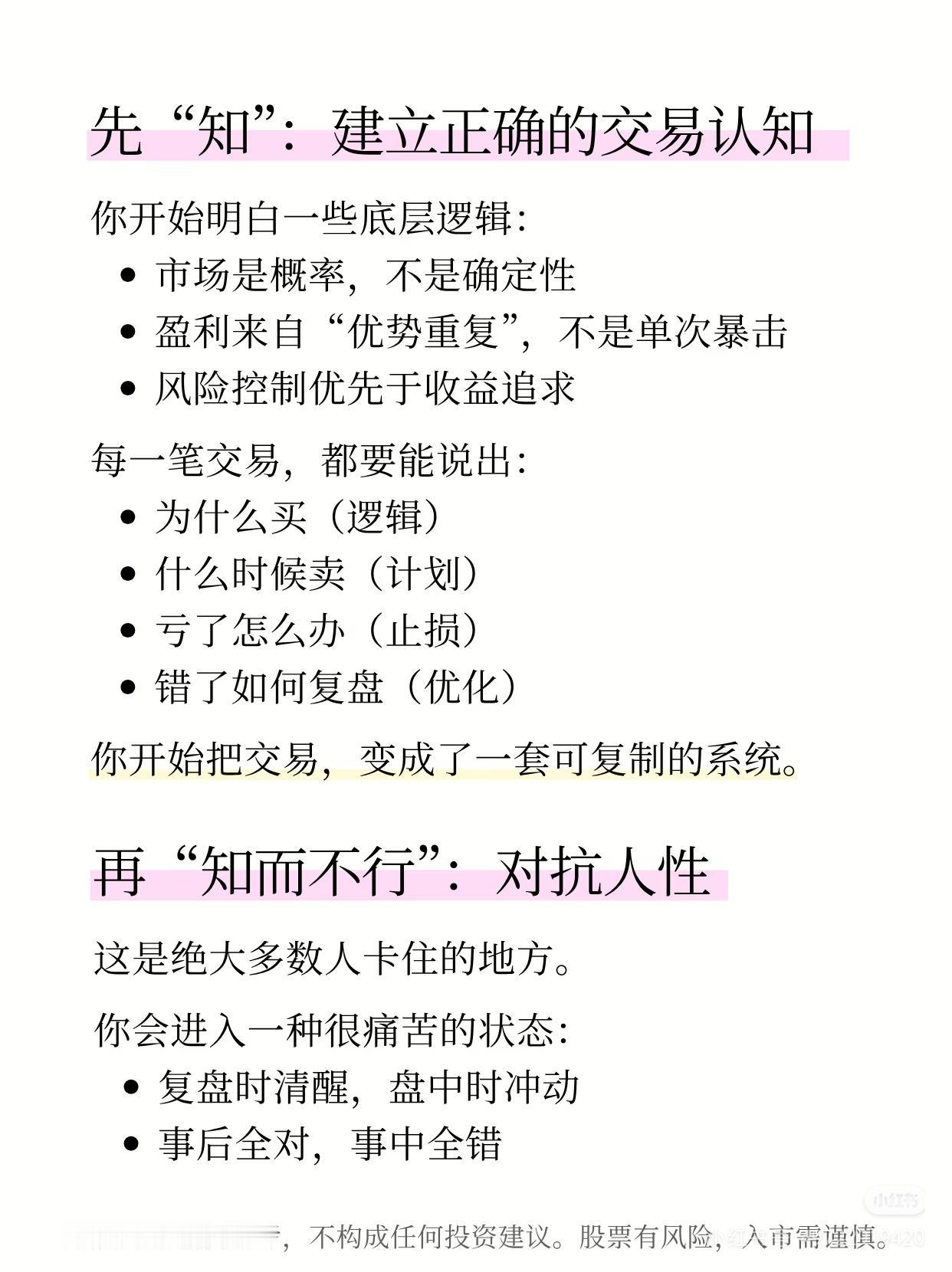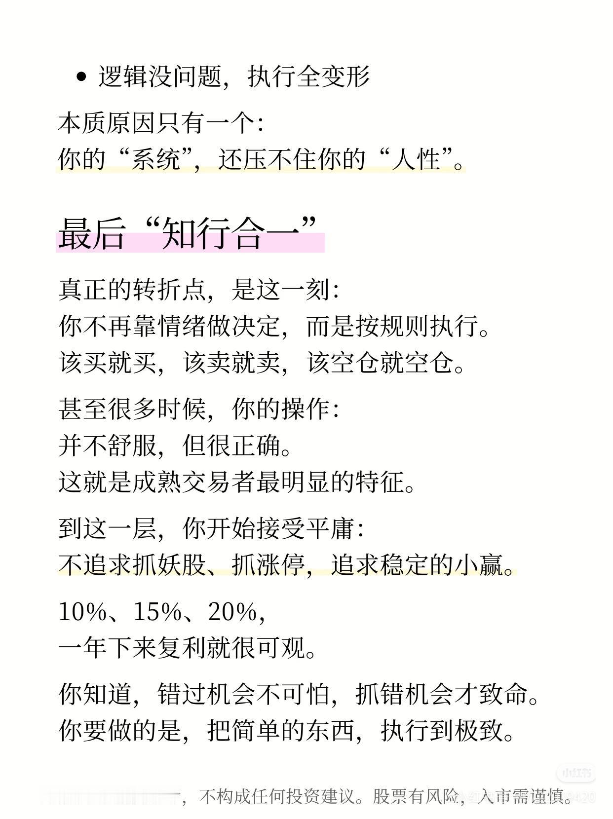 炒股的尽头,从来不是赚了多少钱,而是真正做到知行合一。
