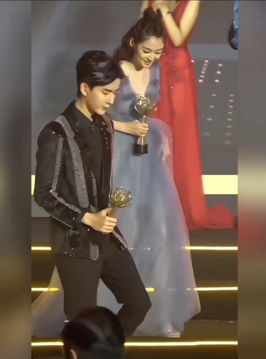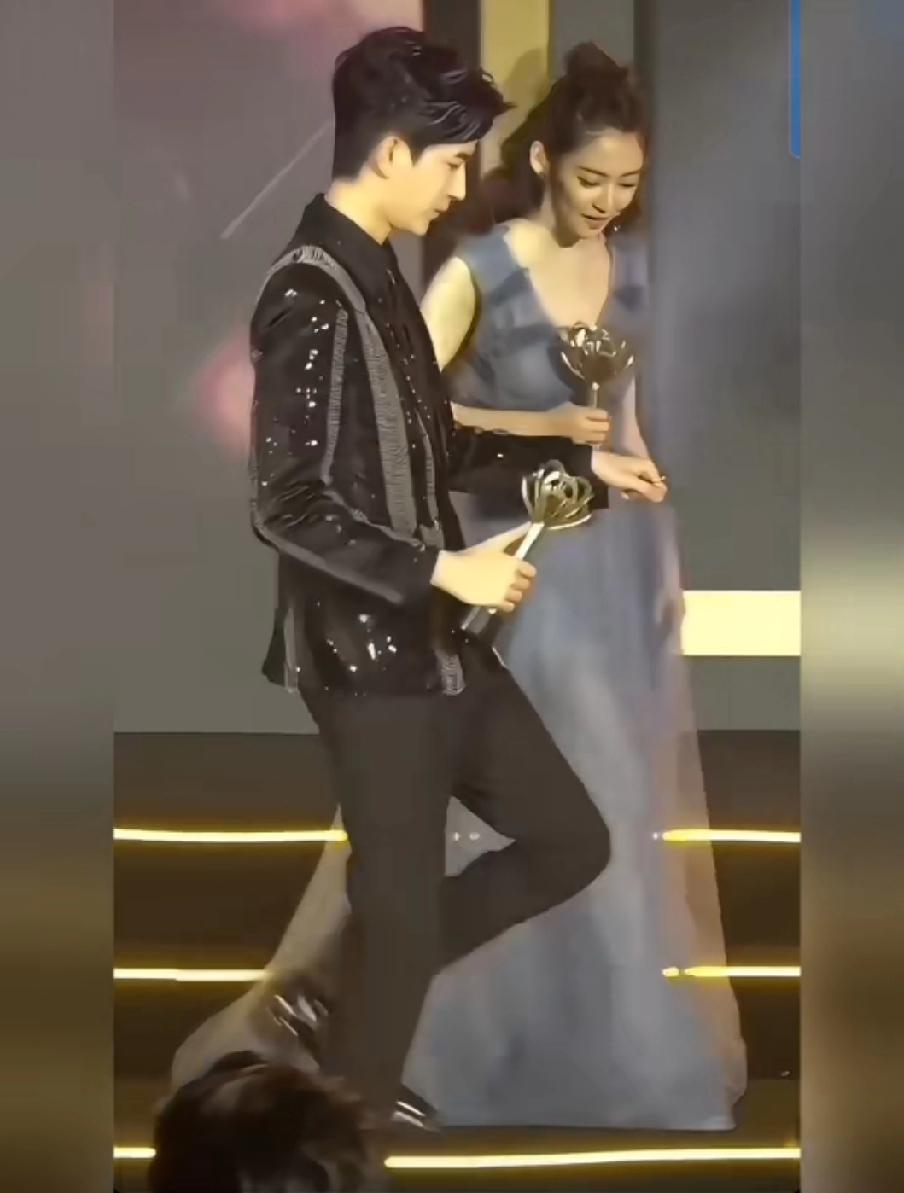 不过她一手拿着奖杯,一手提着裙子,就没有去扶。但也流露出一个甜甜的笑容来,与萌萌有说有笑地走下来。