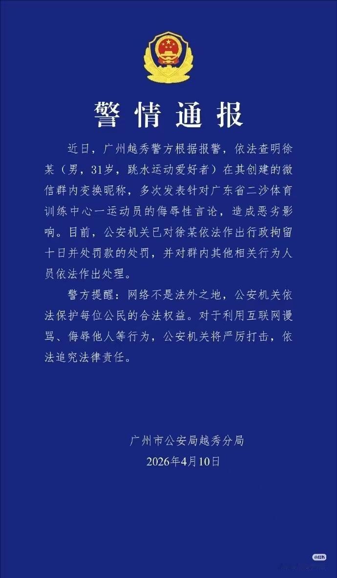 之前网传群主姓徐名鑫,是上海经管学校2009届的,闹半天全部都是真的,竟然还是个跳水运动爱好者,如今被抓获仅拘留十天加罚款,实在是太轻了。