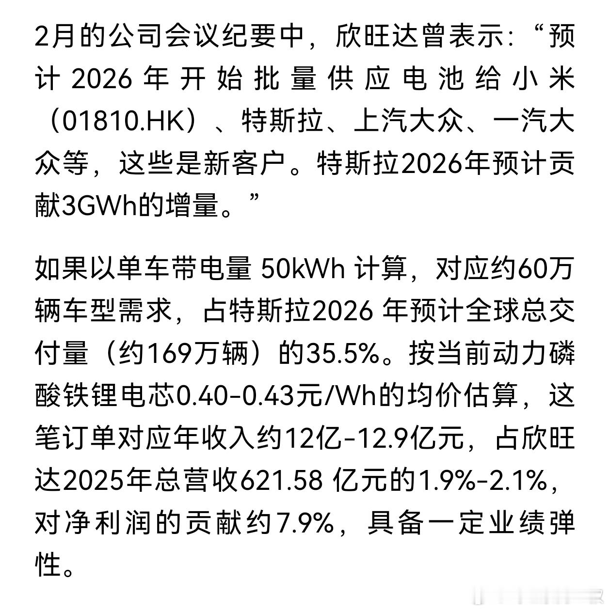 特斯拉采购欣旺达的电池做为其电芯来源,欣旺达在国内二线品牌也是较弱的。是不是可以