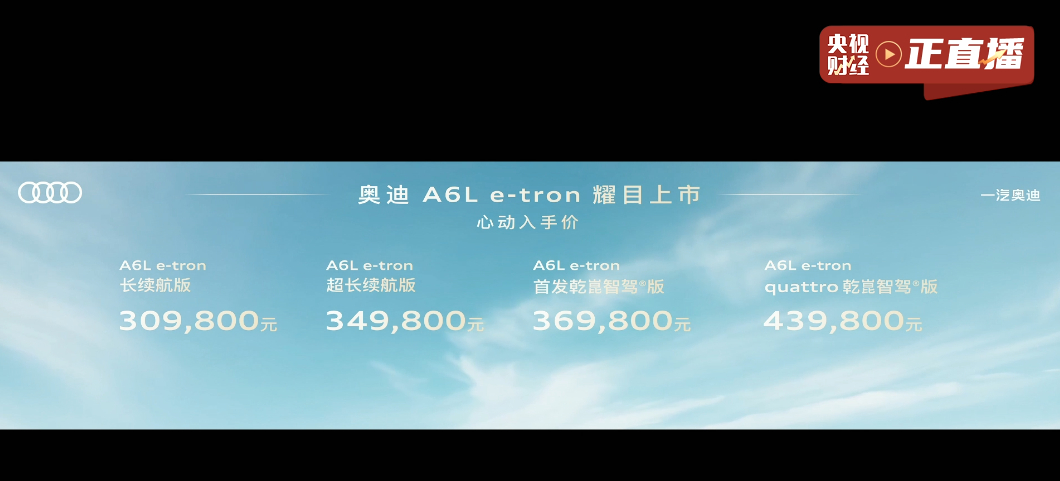 奥迪A6L e-tron 30.98-43.98万,带华为智驾长续航版 30.9