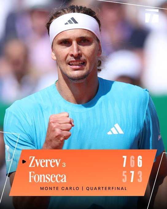 兹维列夫第10次打入红土ATP1000大师赛的四强,红土能力确实还是很强的。