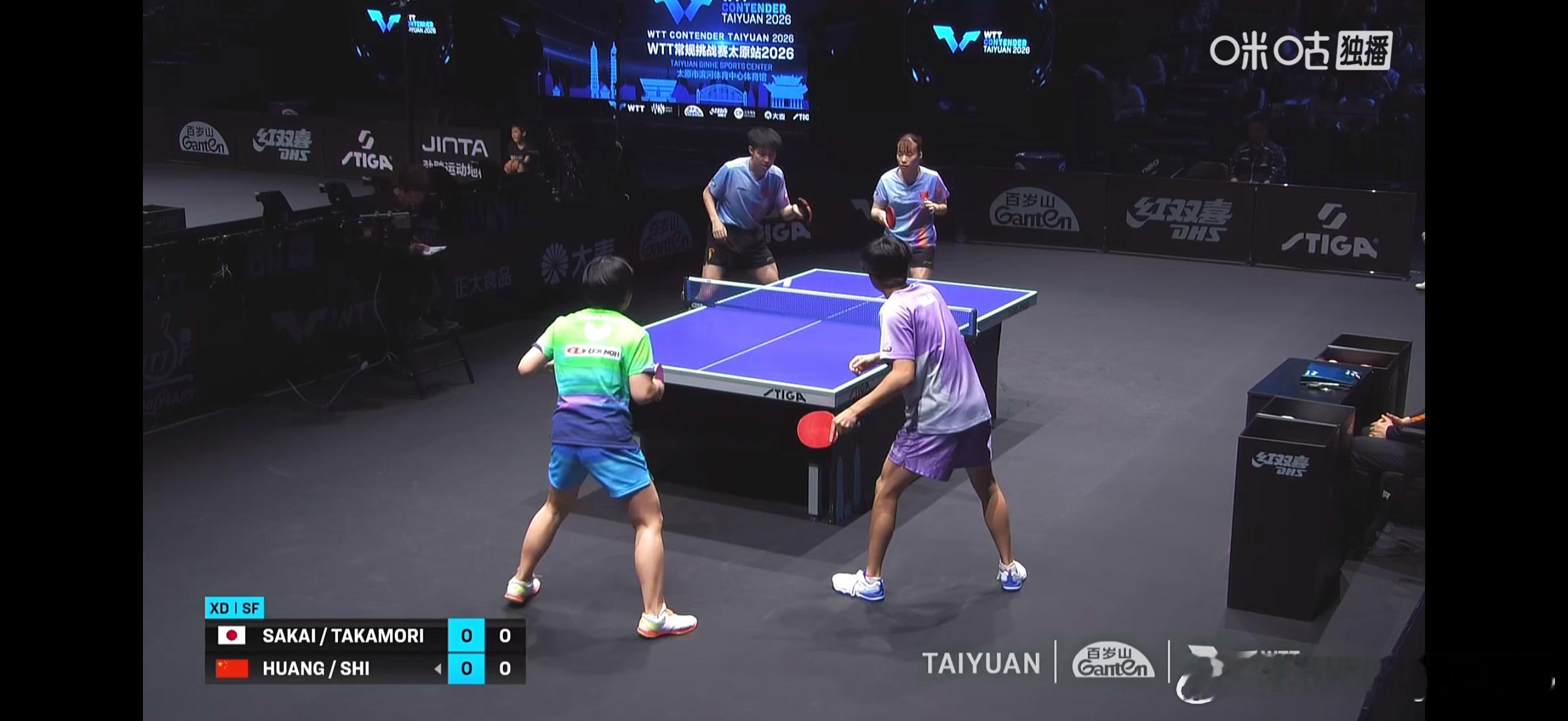 WTT常规挑战赛太原站2026 混双半决赛:🇨🇳黄友政/石洵瑶3比1坂井雄飞