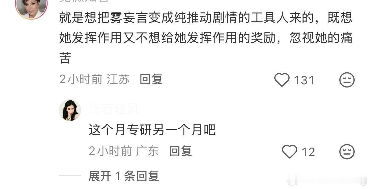 月麟绮纪这段姐妹对峙被审判了…郭四的镜头语言甚至把雾妄言至于背叛者的视角,剧情甚至开始有了“你虽然失去的是双腿,但她失去的爱情”的荒谬感好多剧粉替雾妄言打抱不平…