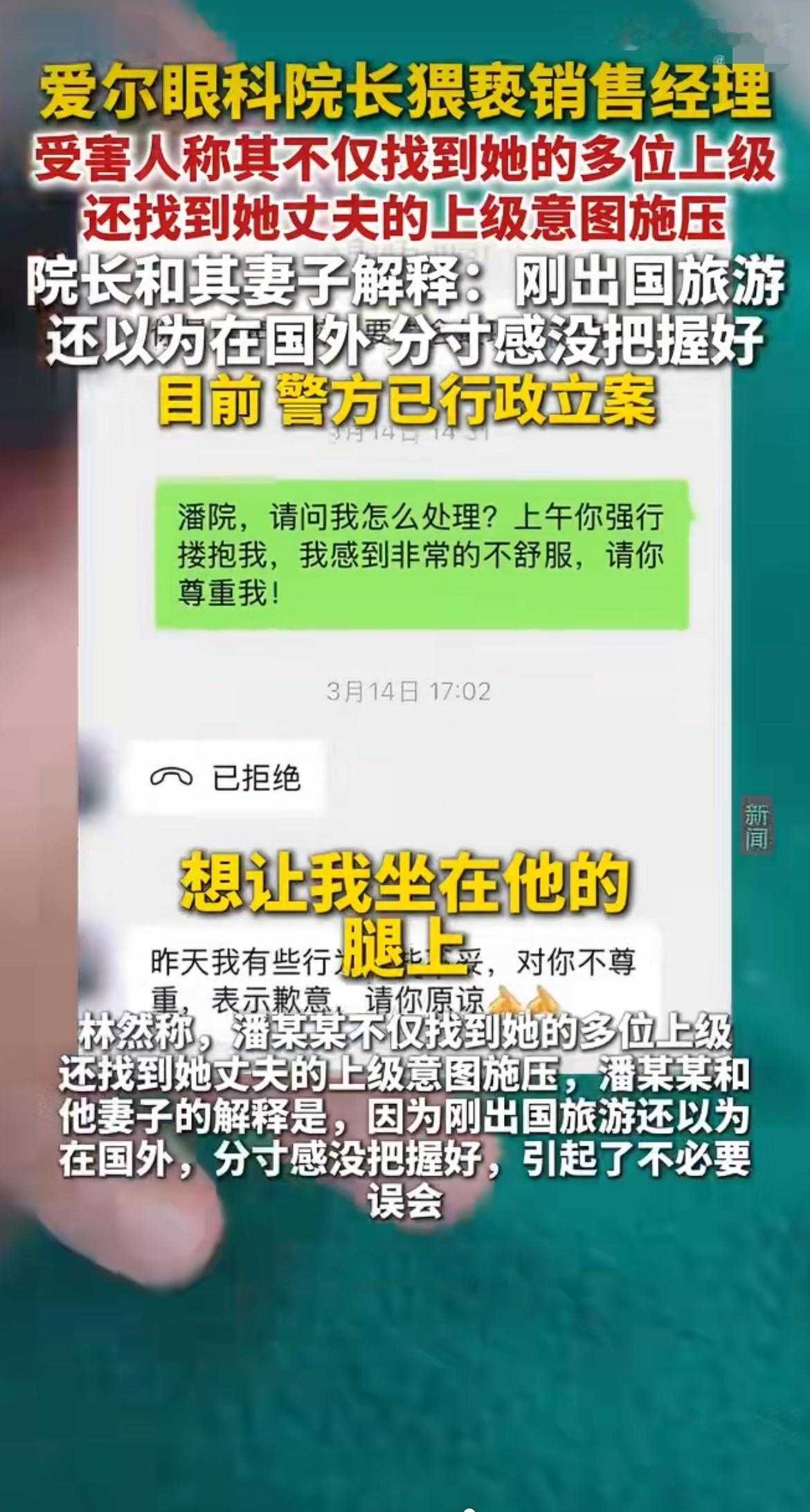 可笑!爱尔眼科院长猥亵女员工,不认错还甩锅“以为在国外,分寸没把握好”!这理由也太奇葩了!而且他还找女员工和其老公的上级施压,想让这事儿“大事化小”。院长哪里来的底气这么嚣张?
