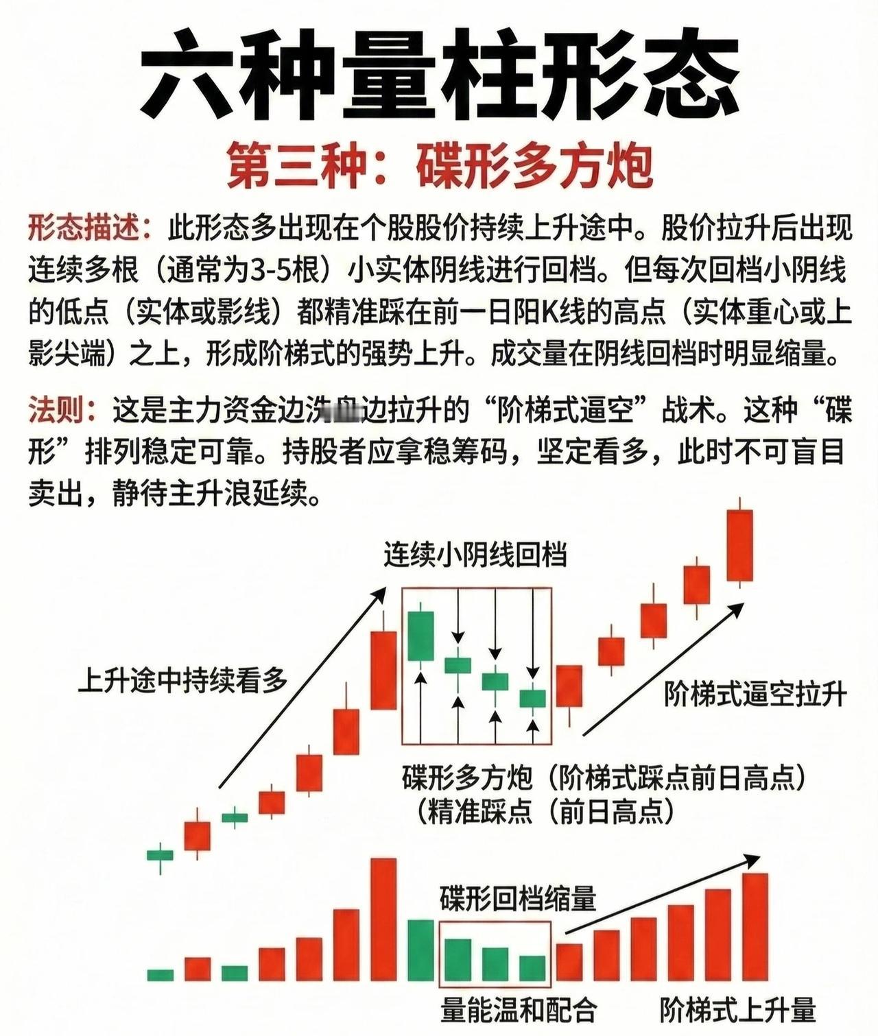 [三]碟形多方炮,上升途中连续小阴线回档,每回都精准踩在前日高点之上,这是主力边洗边拉的阶梯式逼空,拿稳。
