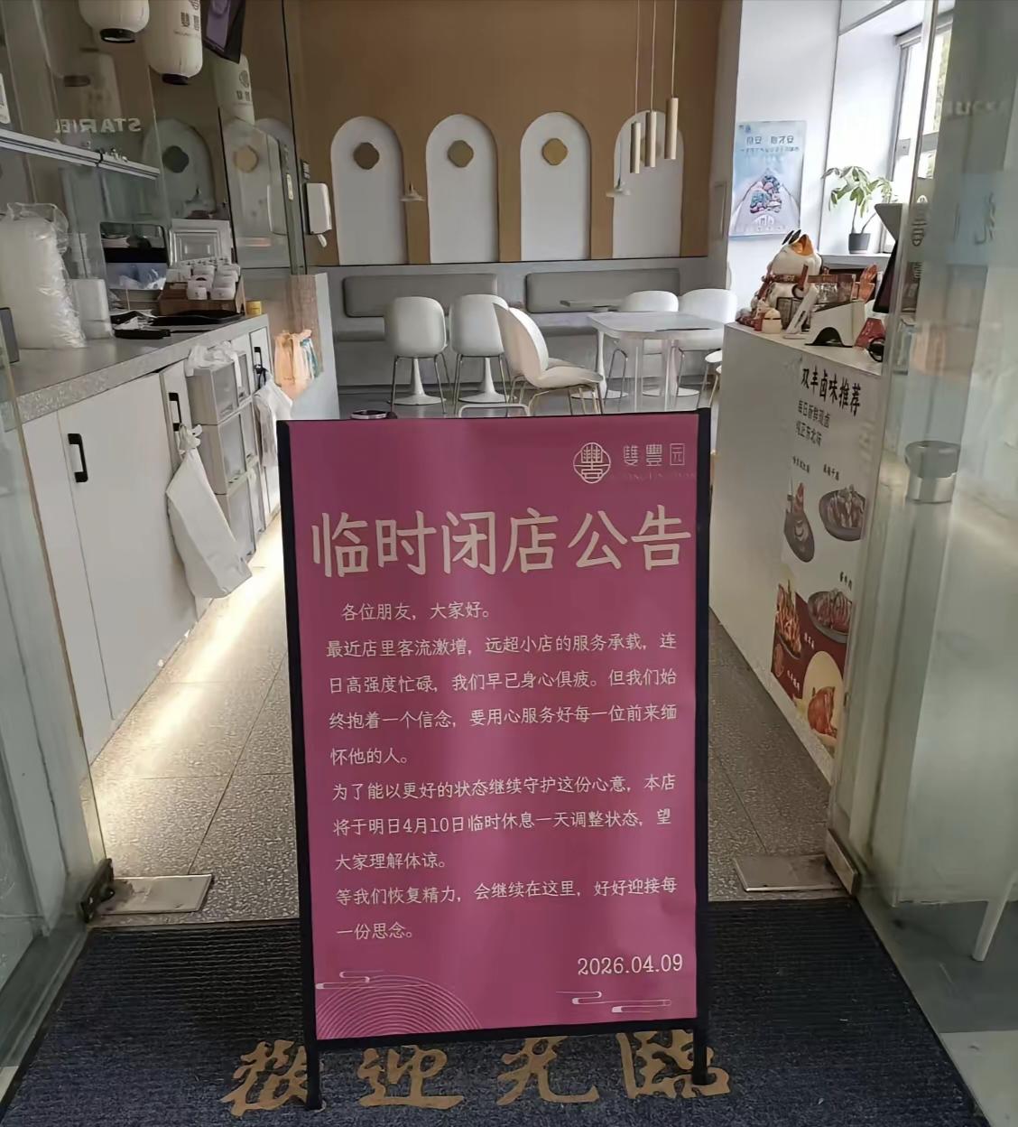 闭店一天,并不是老板故作矫情,而是为了调整好状态,更好的服务好每一位前去缅怀他的人。