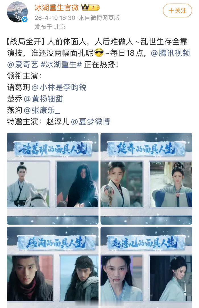 《冰湖重生》官博把那条“人前体面人,人后难做人,谁还没两幅面孔”的微博删了,到底算不算回应赵丽颖工作室今天发的楚乔传内容?