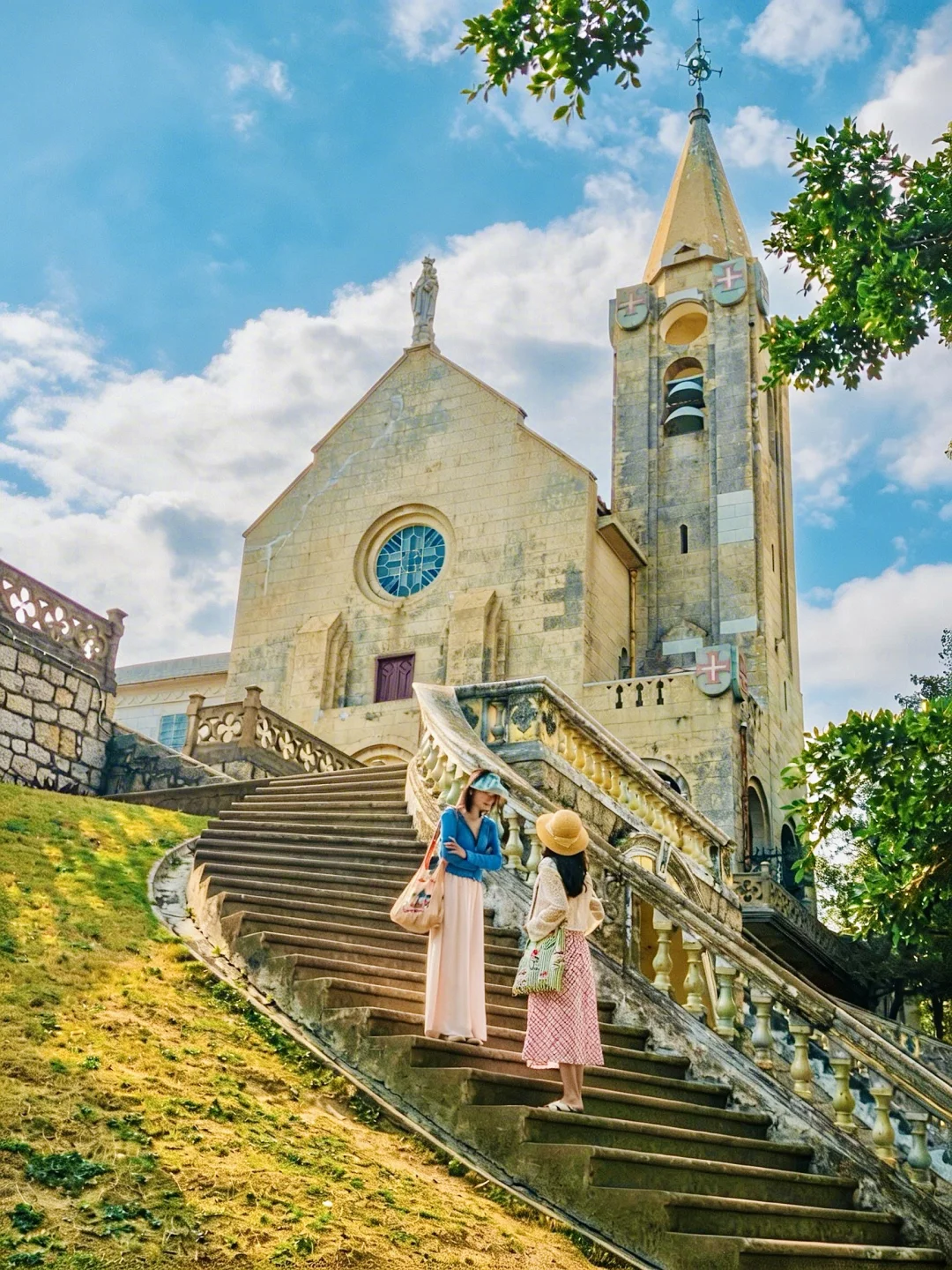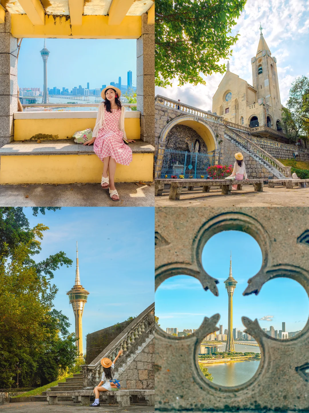 半山上静谧的葡式教堂,一览南湾湖、澳门塔全景,蜿蜒的石阶梯与喷水池都特别出片~