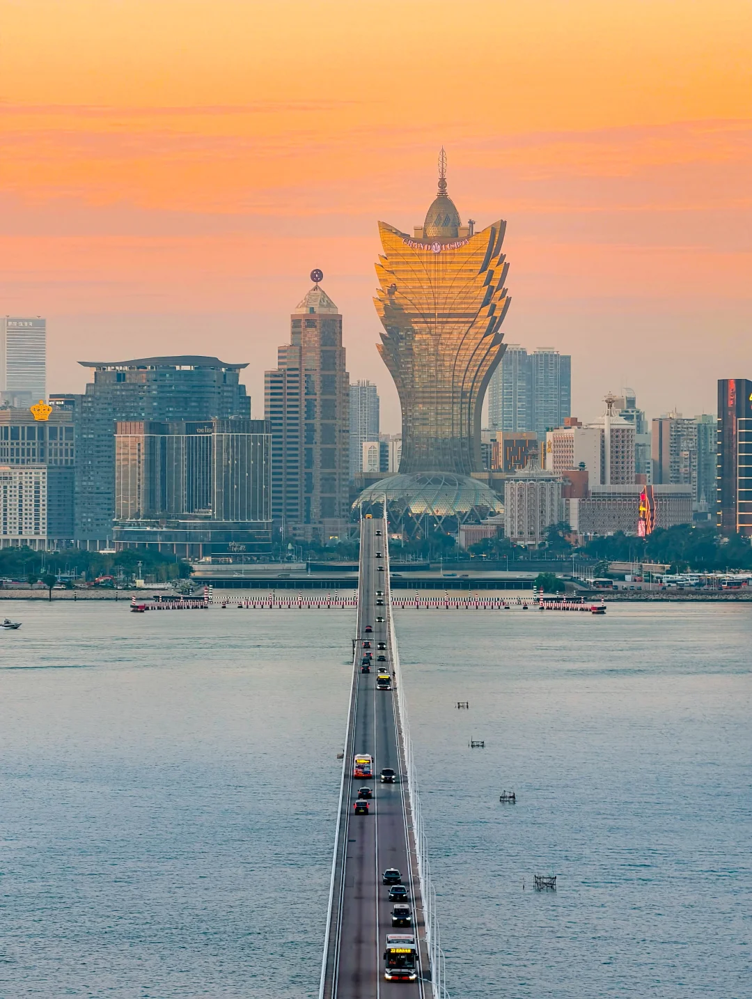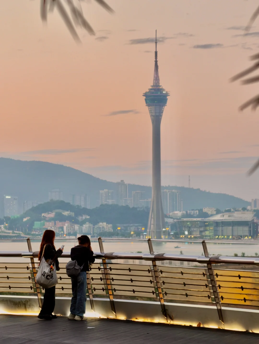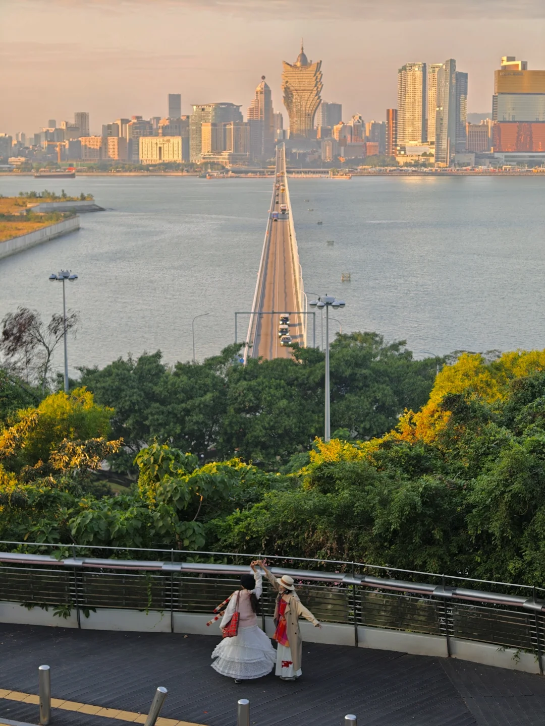 把三座跨海大桥、新葡京地标尽收眼底,日落时分来,长焦拍出绝美“金色进城路”,山下直接电梯上去轻松直达