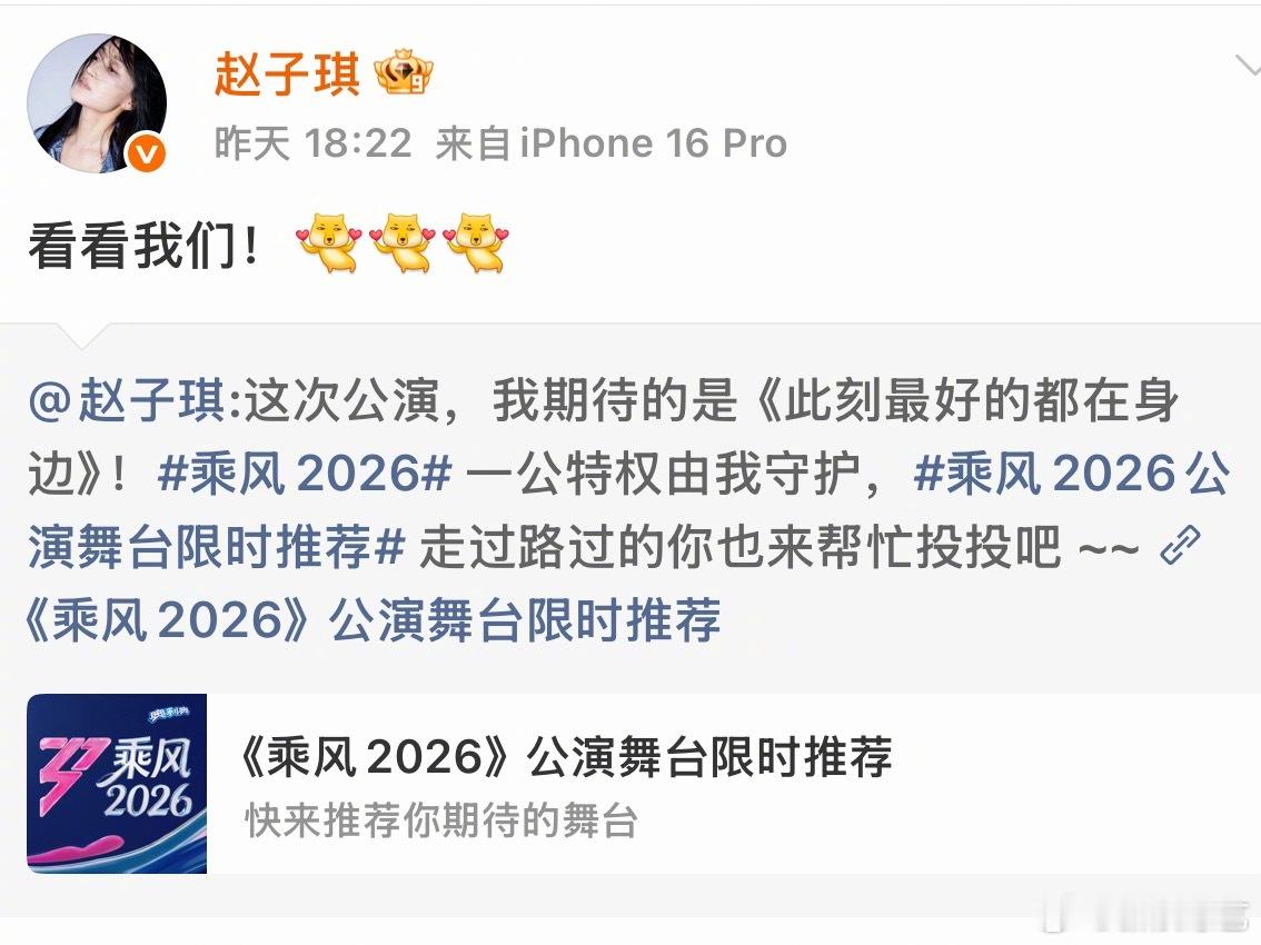 赵子琪淘汰 被姐姐的淘汰感言整破防了!不争不抢、温柔坚定,把机会留给队友。姐姐还曾为自己的舞台亲自发博拉票,老天请对温柔又有力量的姐姐再好一点!浪姐一公直播乘风2026