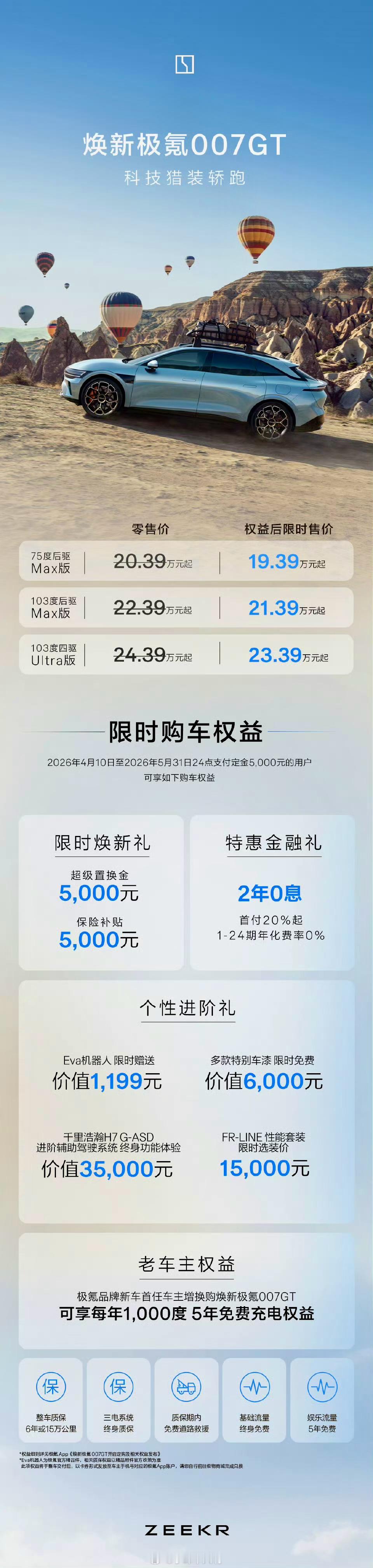 此次焕新的极氪007与007GT正式上市,车型权益后的限时售价为193900元至233900元,精准落在20万级纯电轿车区间,对于这个价位的购车人群来说,有着很强的针对性。