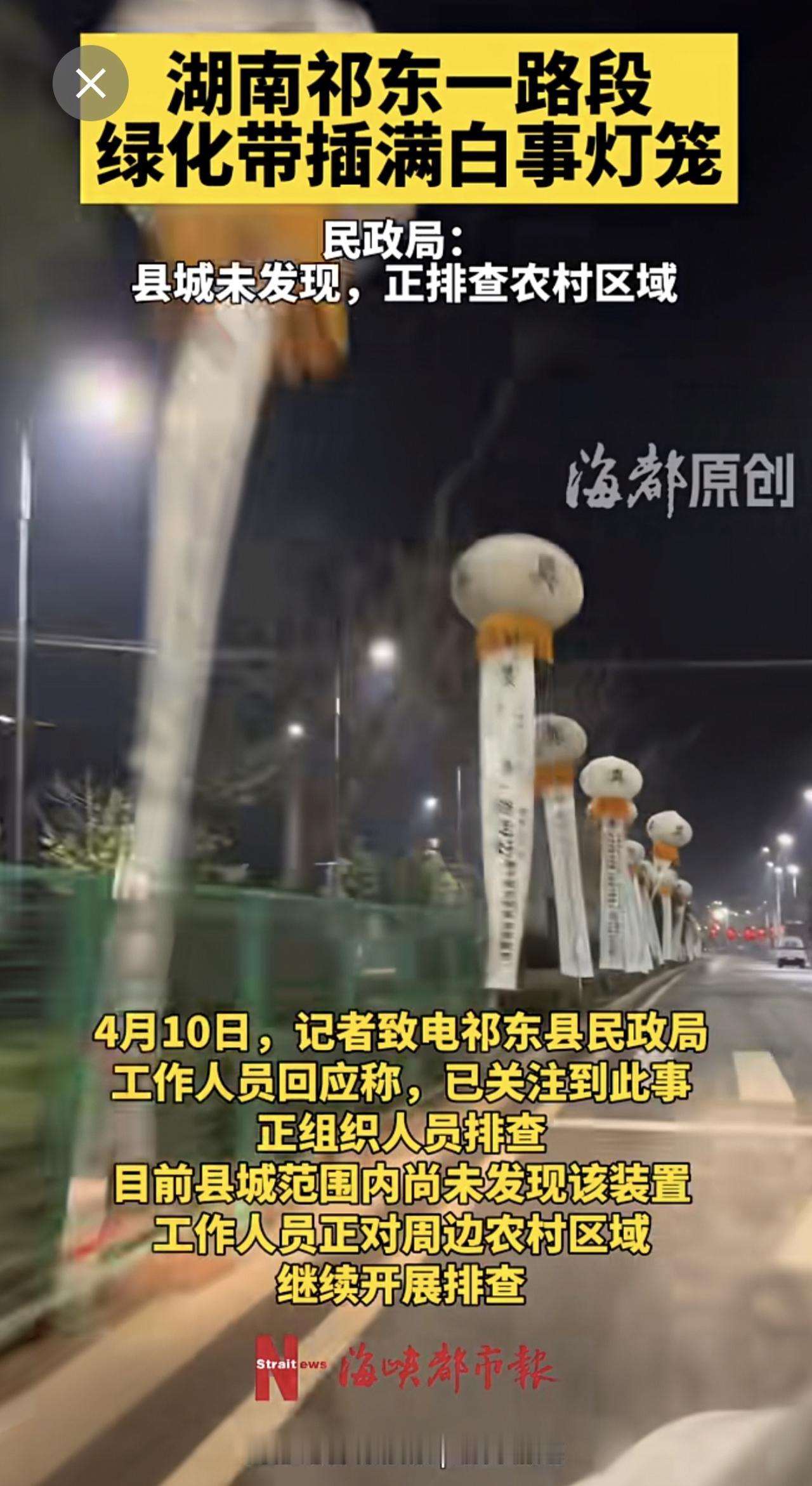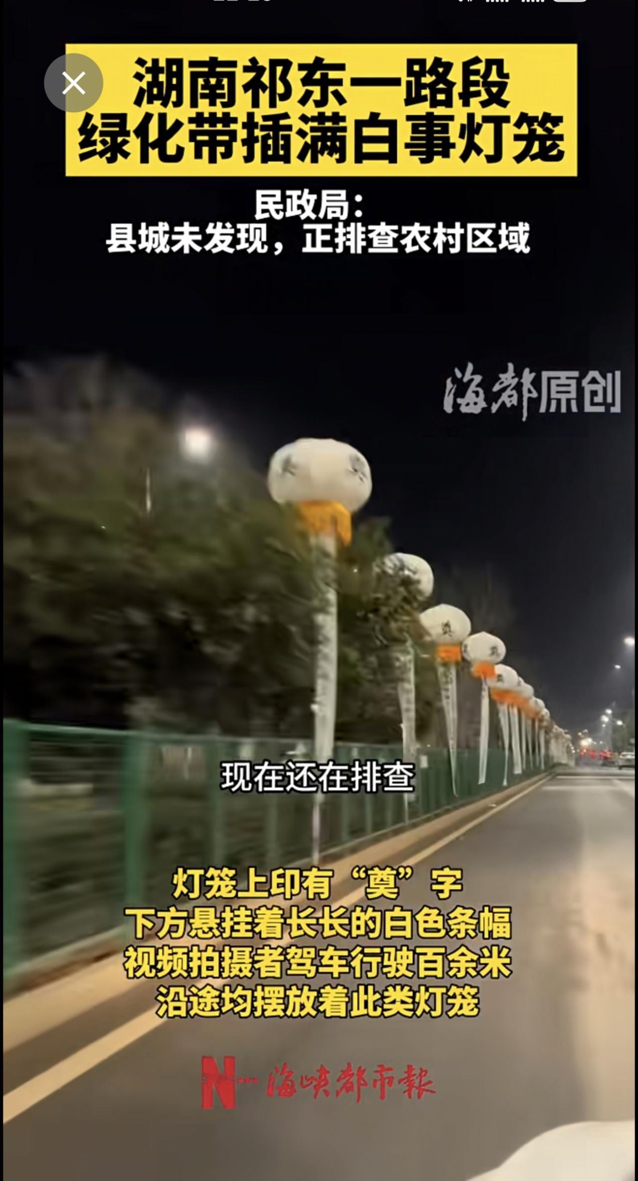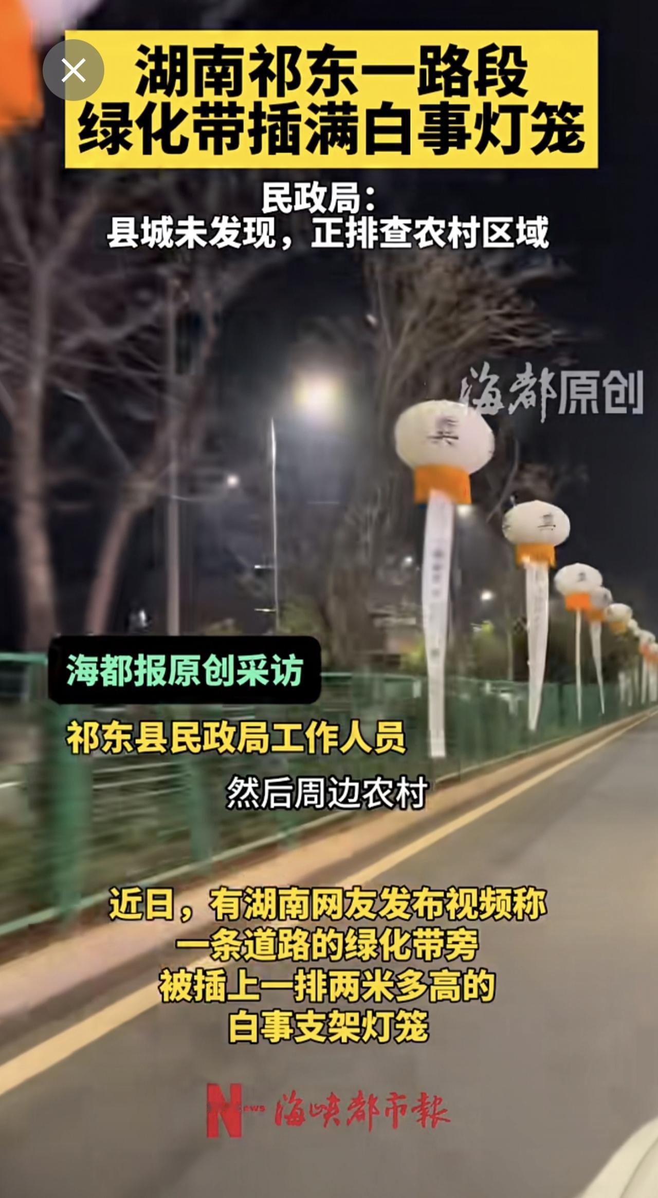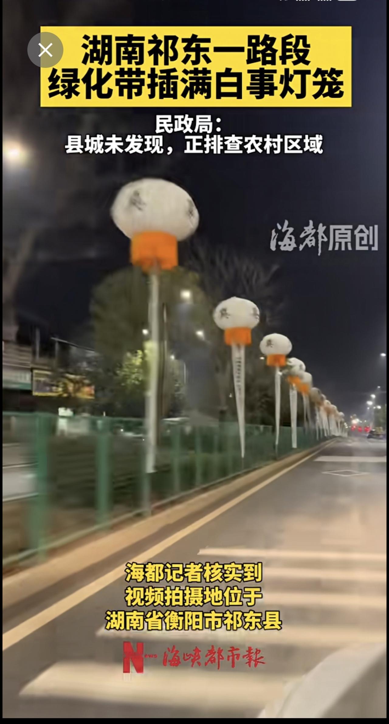 湖南祁东一路段插满白事灯笼,民政局:县城未发现,正排查农村