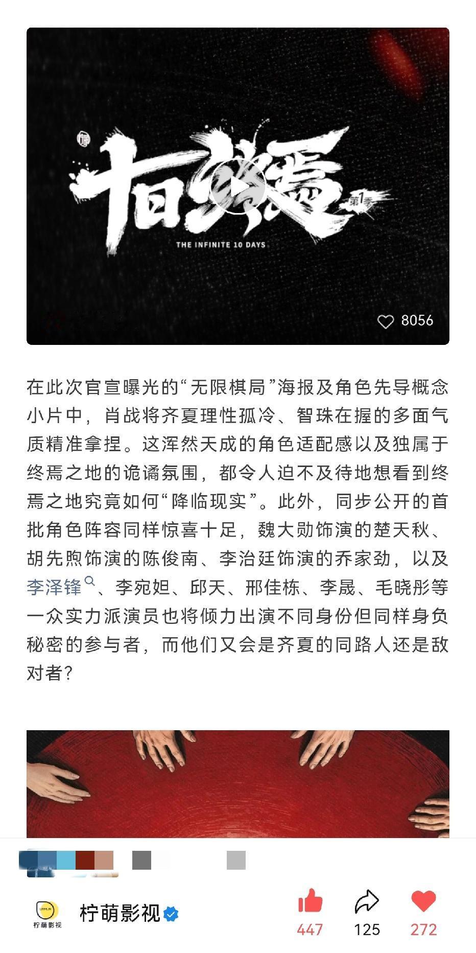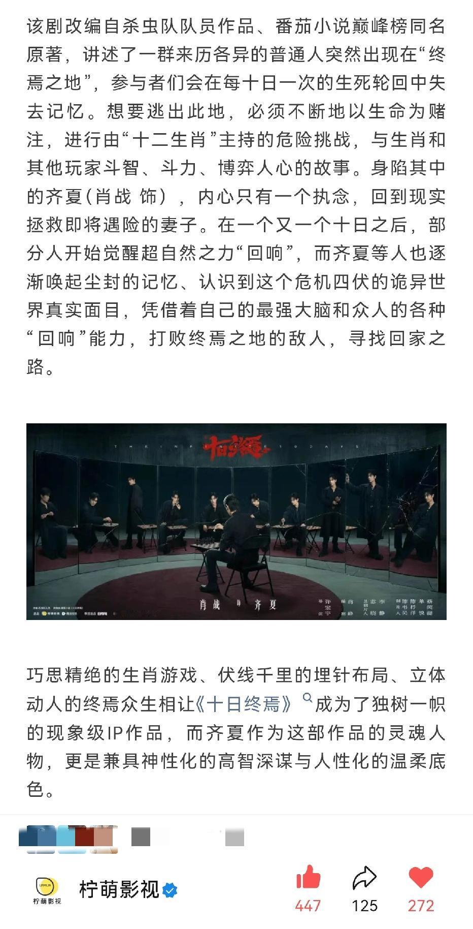 柠萌今晚在公众号写肖战携众星戮力智闯终焉之地[呲牙][呲牙][呲牙]