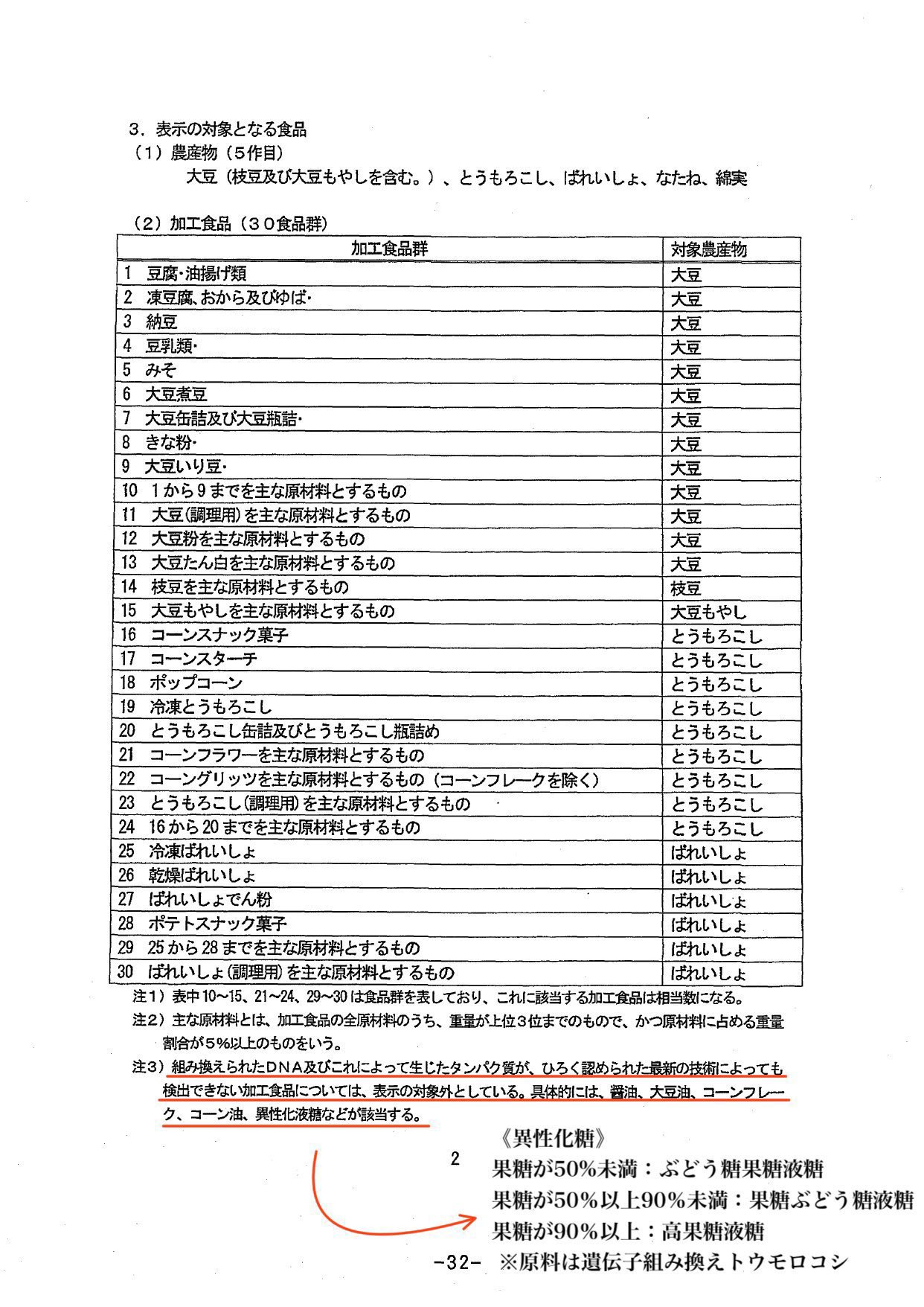 日本では遺伝子組み換え表示が義務化されていますが、実は使っていても表示されない物があります。その代表例が「果糖ぶどう糖液糖」です。遺伝子組み換えトウモロコシから作っても、最終的に組換えられたDNAやタンパク質が検出されなければ、遺伝子組み換え表示は免除されてしまいます。