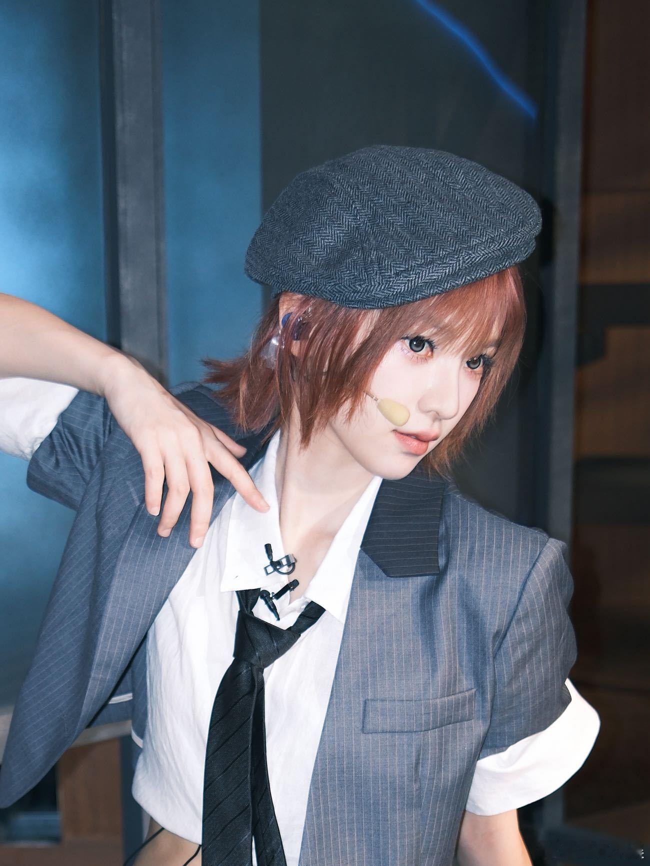 黄灿灿舞台报童帽造型给到夯黄灿灿西装造型给到夯 露腰设计小秀身材,报童帽增添灵动