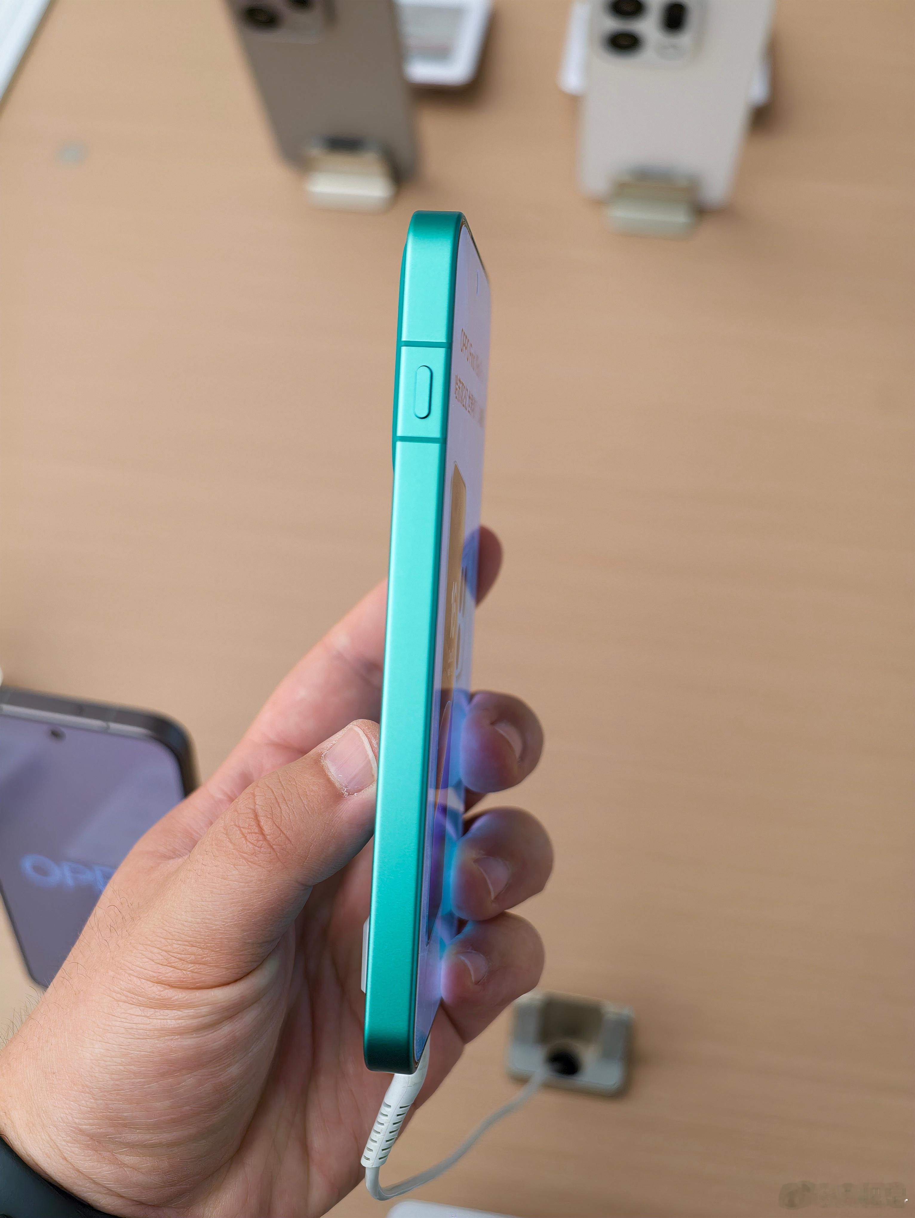 乘风青这个颜色饱和度很高,我觉得挺好,选就选这个主打色。而且主打的是小屏机,我没想到,我还以为它会和 X9 Pro 一样大呢