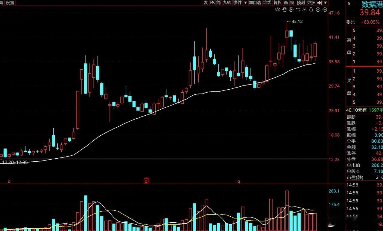 1. 数据港:净资产收益率3.63%,隶属上海静安区国资委,是老牌数据中心服务商,在核心枢纽区域布局完善,具备显著规模优势;近一年周线震荡上行,股价重心稳步抬升。