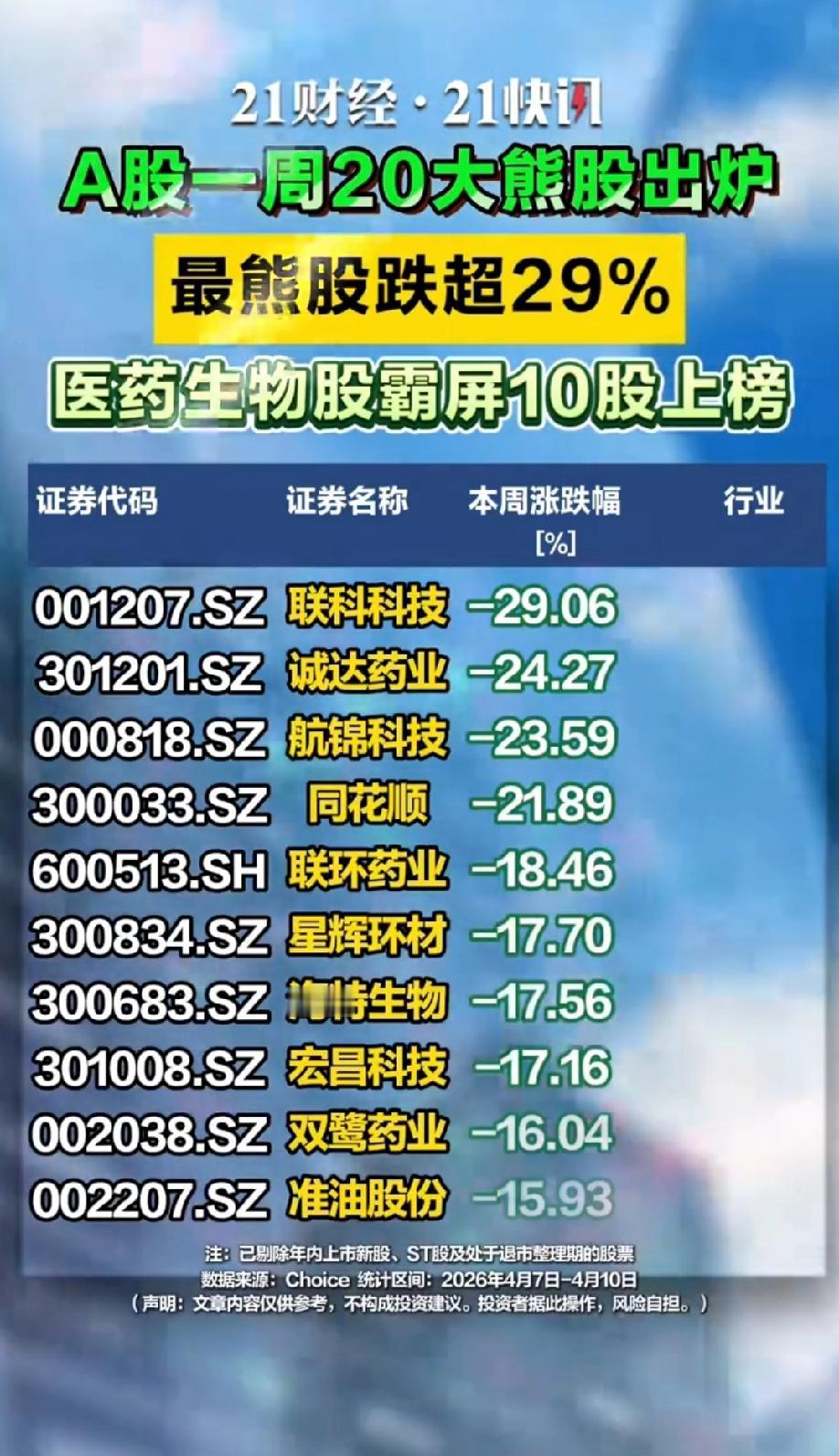 A股一周20大熊股出炉!有人亏到关灯吃面,有人却看清了赚钱的真相!