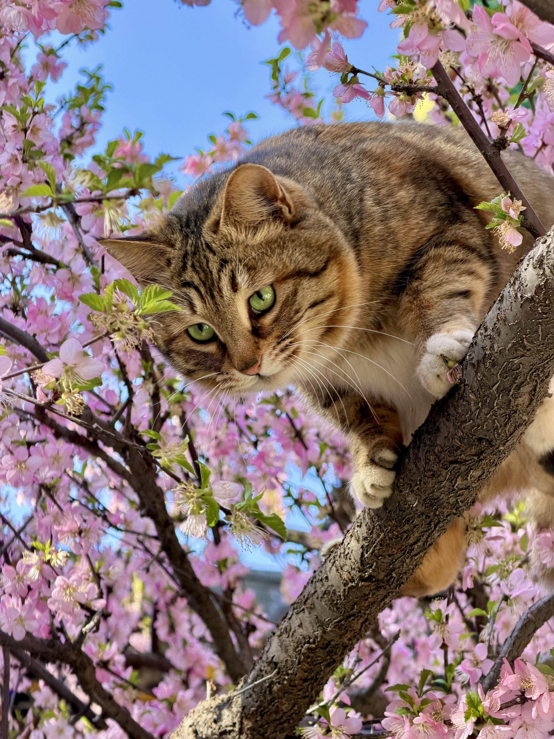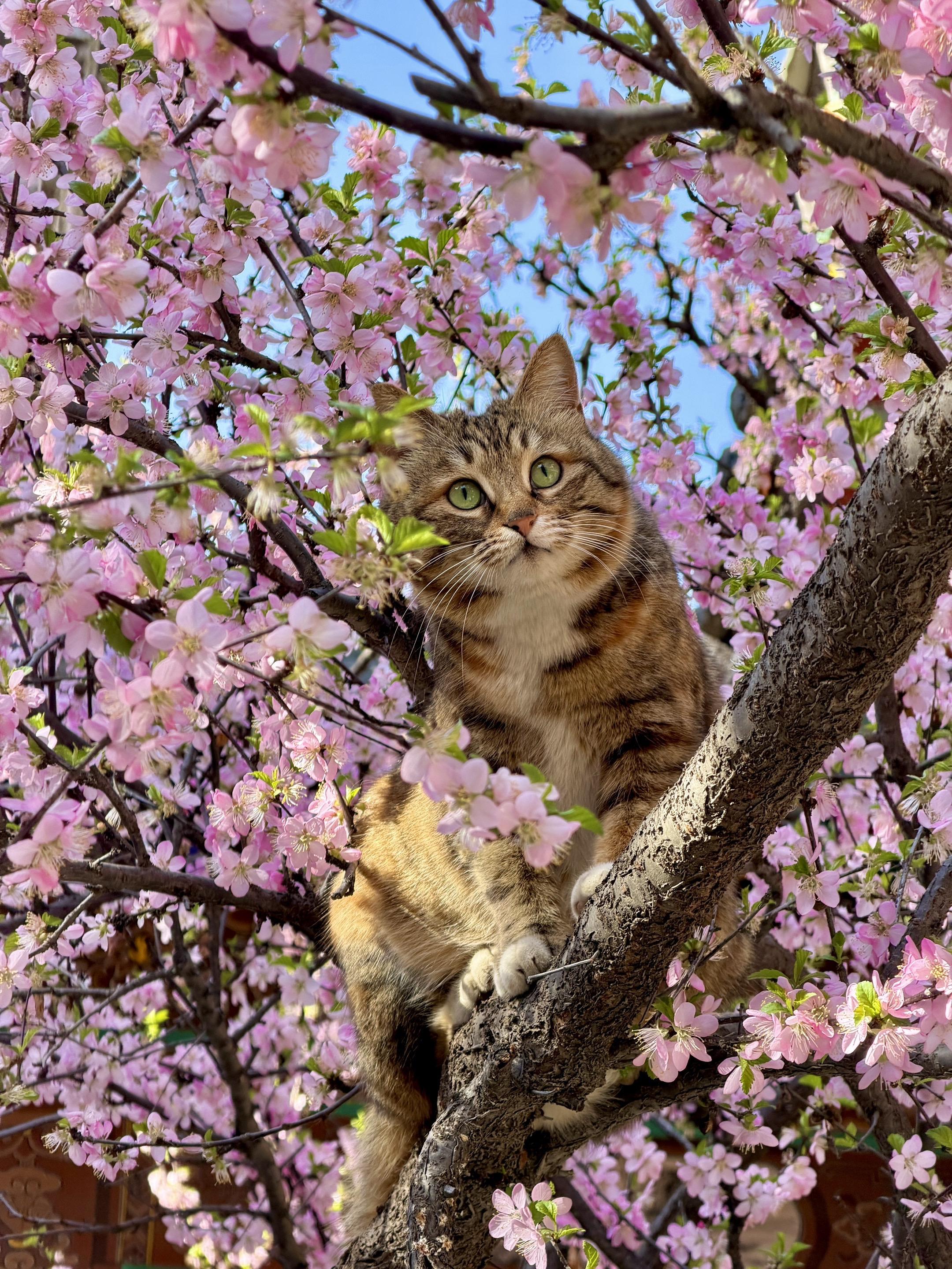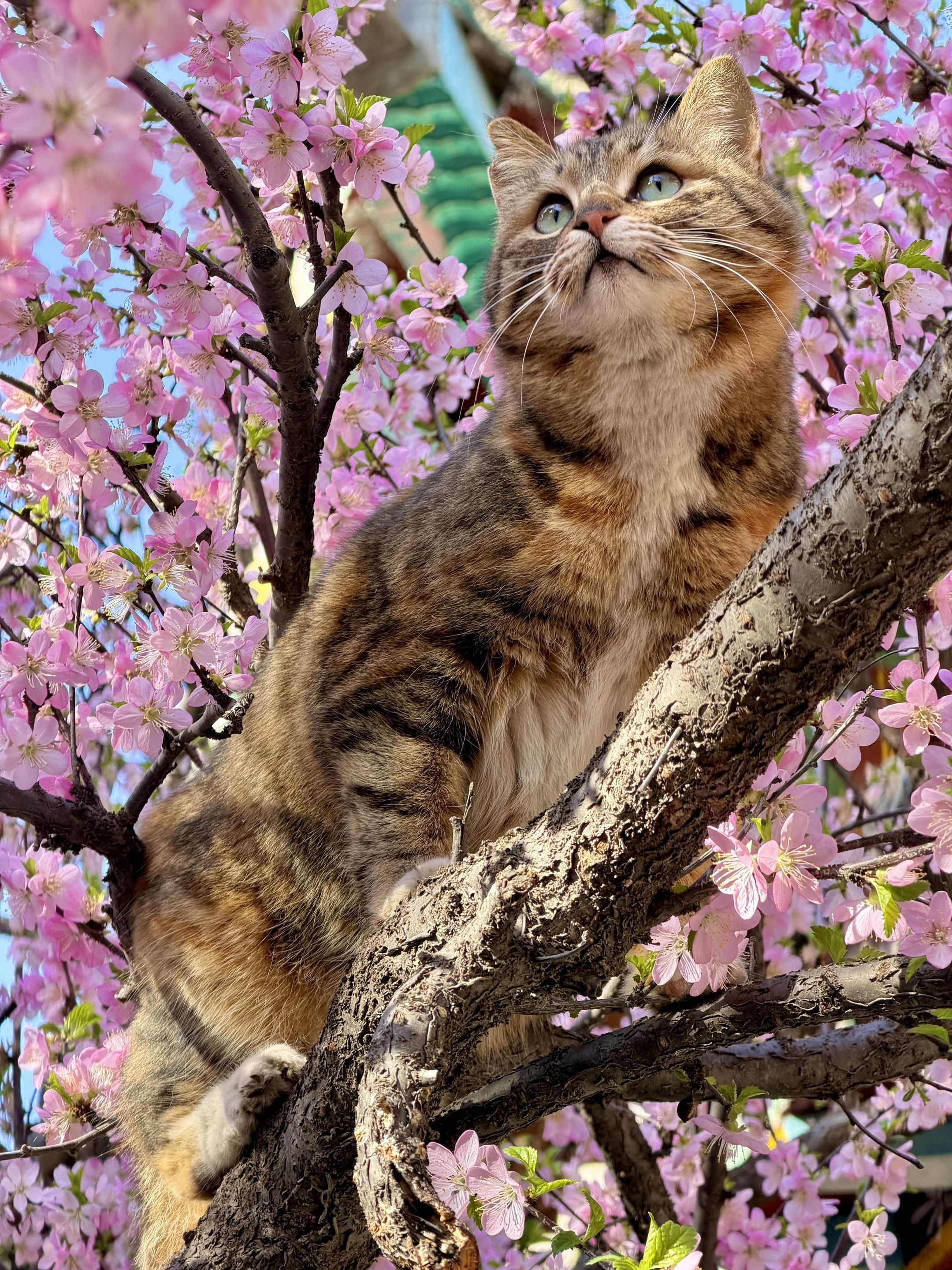 猫花斗艳,好看亖了 上午刚拍的,榆叶梅上的貌美胖彩狸,活灵活现好好看。
