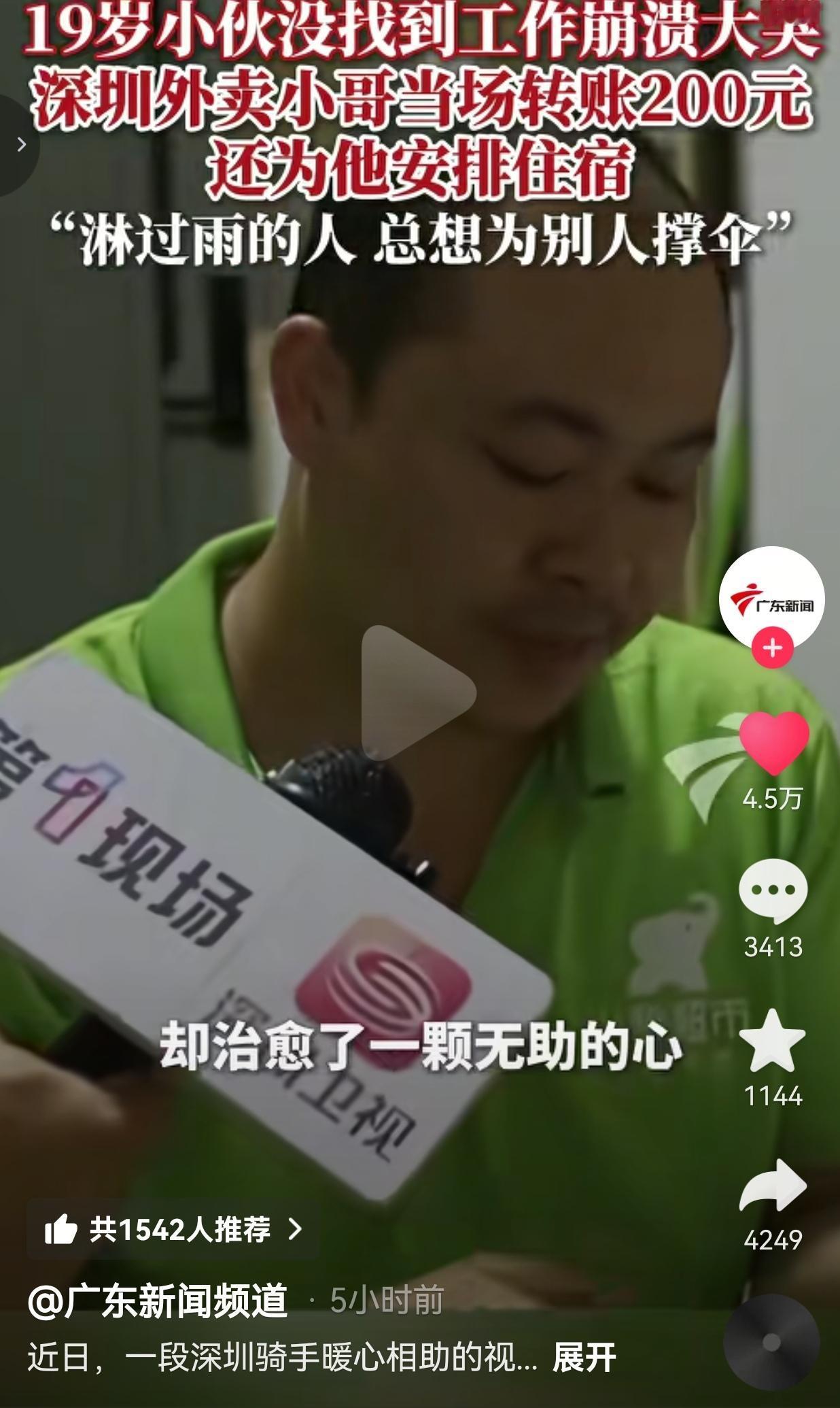 我真的越看越哭,越看越暖!我们总说深圳是快节奏、冷冰冰的大城市,可偏偏就是这些最普通的外卖小哥、打工人,用最朴素的善意,给了这座城市最滚烫的温度。