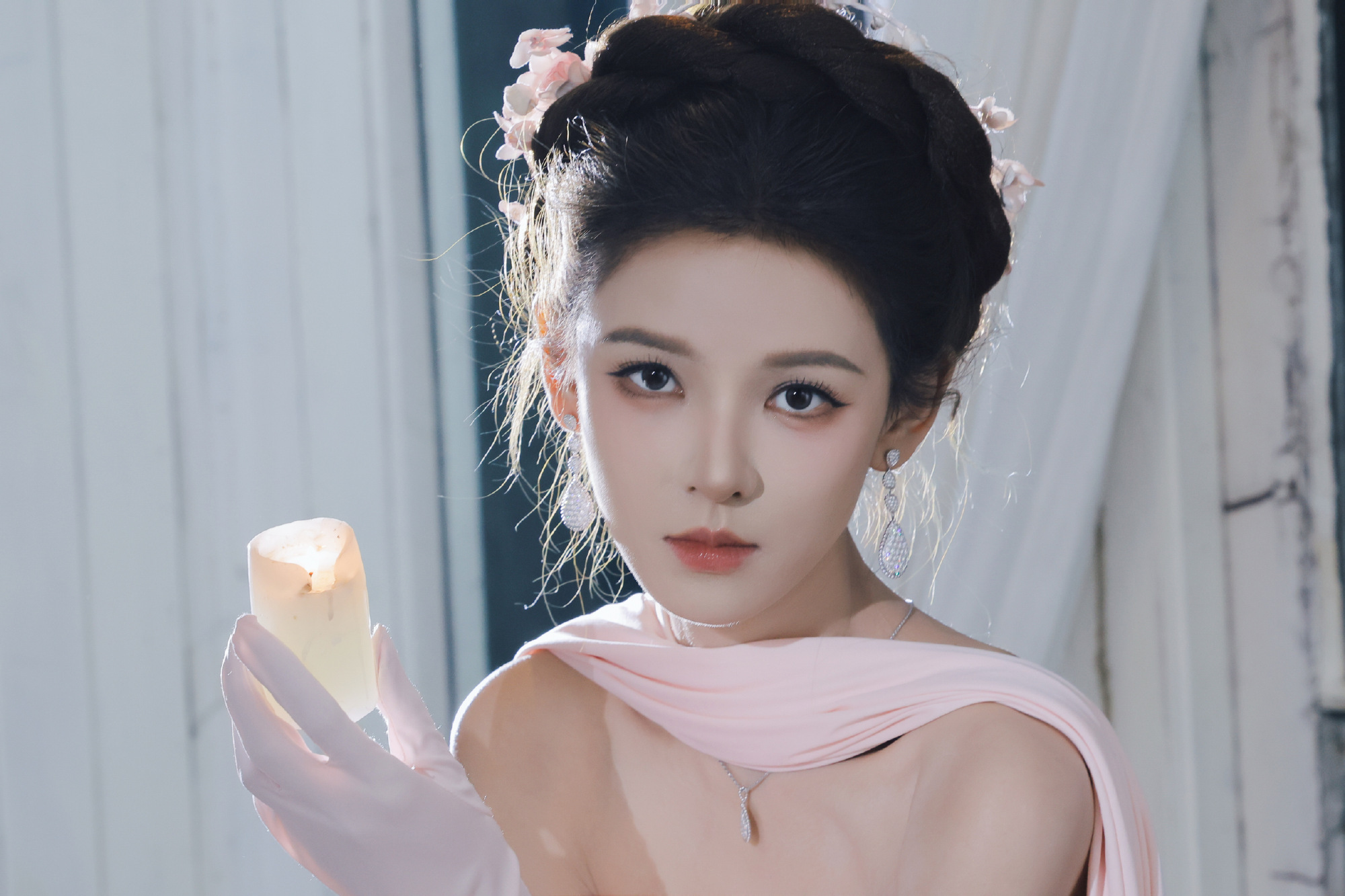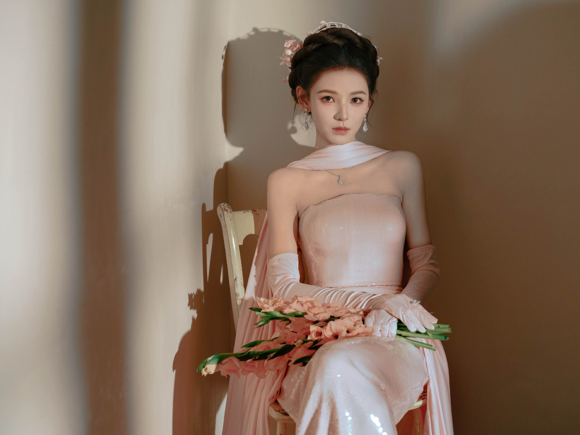 张予曦,浪漫白纱裙,柔美可人。张予曦