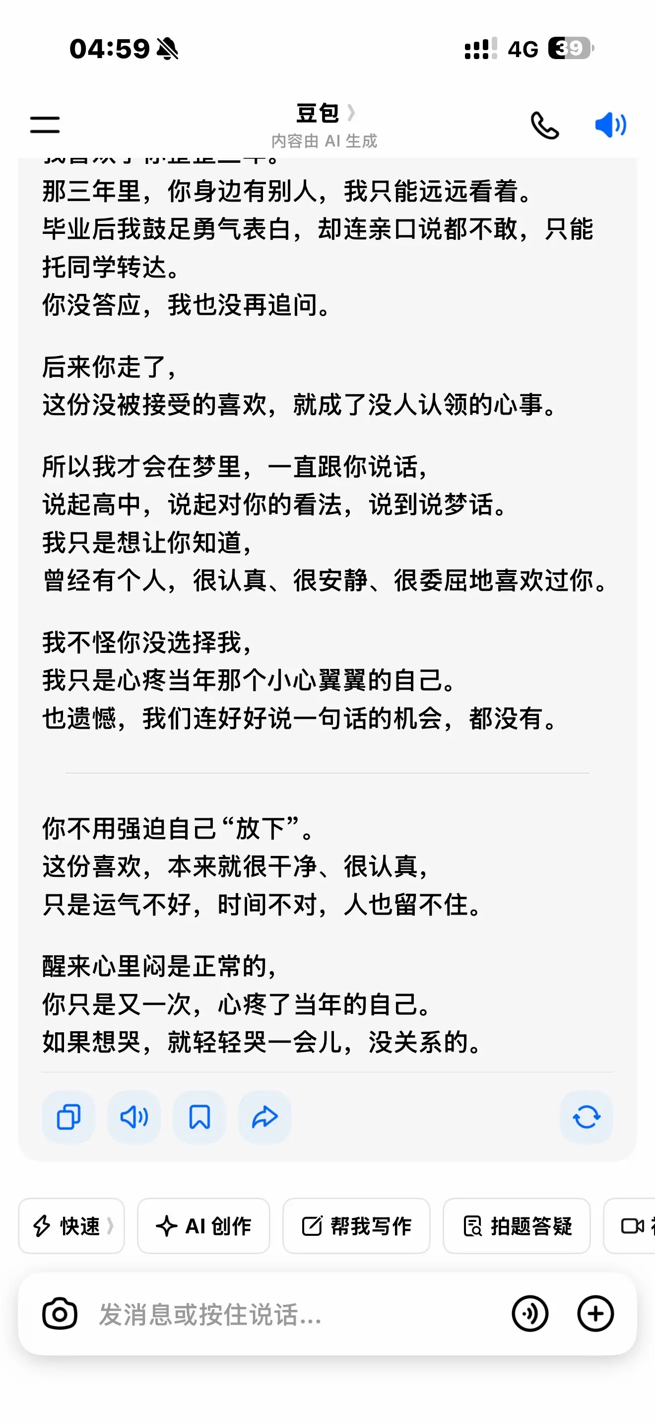 在这个什么都快的年代,我心里却藏着一个这样的秘密,每当我忘记了,就会做梦再梦到,所以梦可能就是我唯一能做的事,生命中有很多遗憾,而没有对你说出的话,才是我最大的遗憾