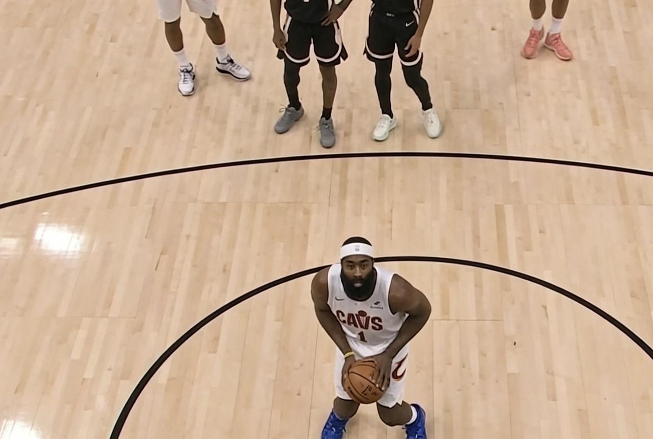 骑士客场挑战老鹰,哈登开场就戴上白色发带,没细看差点都认不出来!